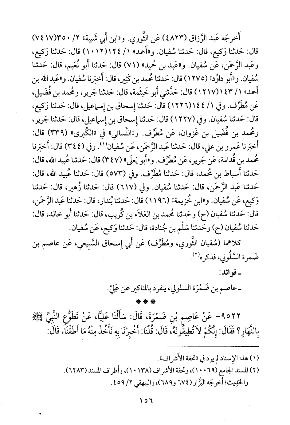 كلاهما (سفيان الثوري، ومطرف) عن أبي إسحاق السبيعي، عن عاصم بن ضمرة السلولي، فذكره (¬٢).