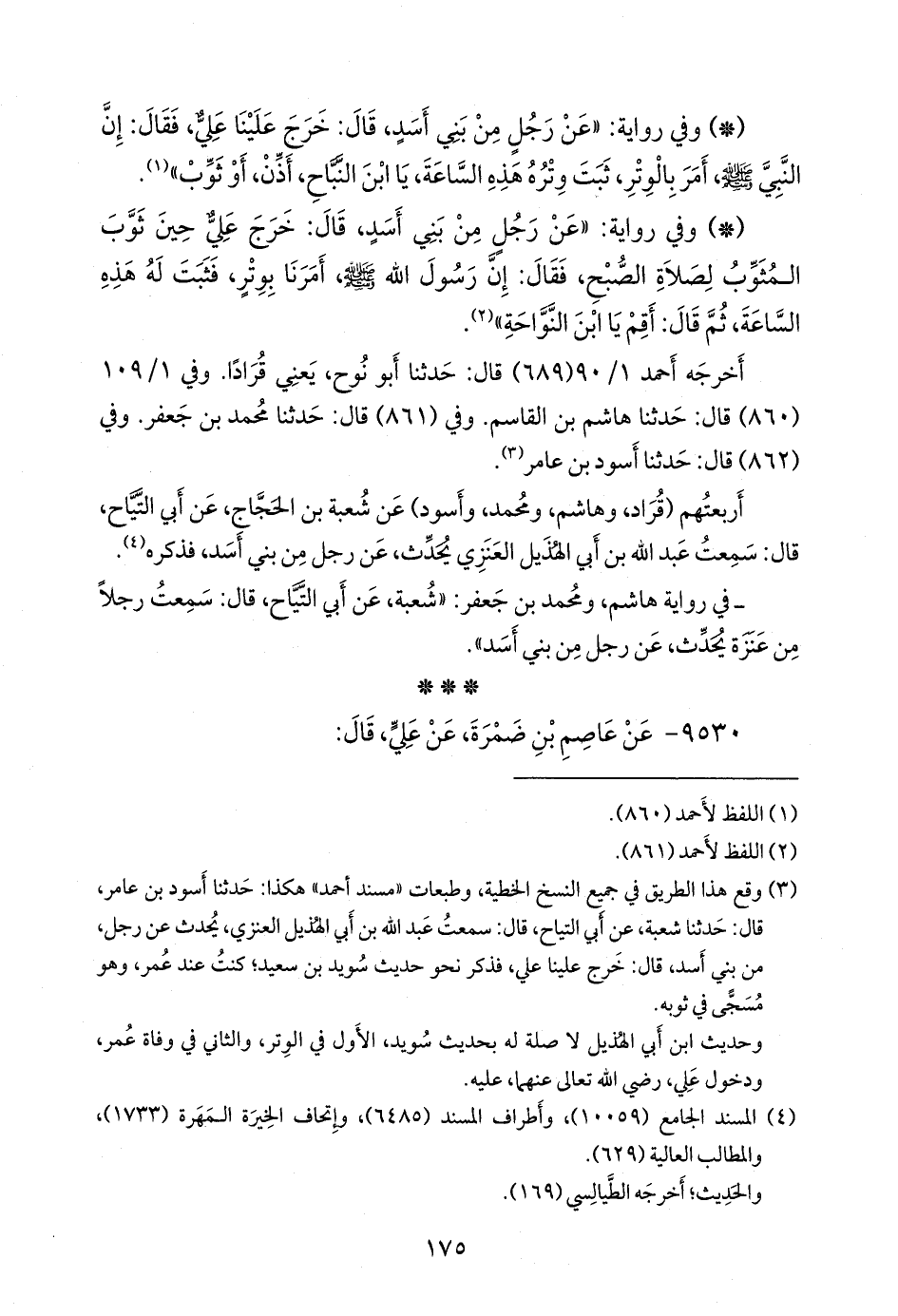 أخرجه أحمد (٥٨٠) قال: حدثنا محمد بن فضيل، قال: حدثنا مطرف. وفي ١/ ٨٦ (٦٥٣) و ٦/ ٢٠٥ (٢٦٢١٤) قال: حدثنا وكيع، قال: حدثنا شعبة. وفي ١/ ١٠٤ (٨٢٥) قال: حدثنا عفان، قال: حدثنا شعبة. وفي ١/ ١٣٧ (١١٥٢) قال: حدثنا محمد بن جعفر، قال: حدثنا شعبة. و «عَبد بن حُميد» (٧٢) قال: حدثنا سعيد بن عامر، وسليمان بن داود، عن شعبة. و «ابن ماجة» (١١٨٦) قال: حدثنا علي بن محمد، قال: حدثنا وكيع (ح) وحدثنا محمد بن بشار، قال: حدثنا محمد بن جعفر، قالا: حدثنا شعبة.