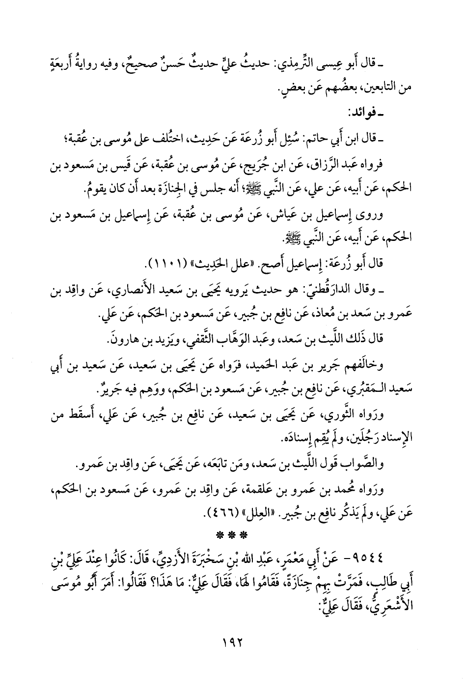 ٩٥٤٤ - عن أبي معمر عبد الله بن سخبرة الأزدي، قال: كانوا عند علي بن أبي طالب، فمرت بهم جِنازة، فقاموا لها، فقال علي: ما هذا؟ فقالوا: أمر أَبو موسى الأشعري، فقال علي: