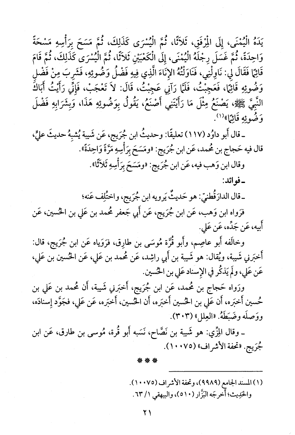 ورواه حجاج بن محمد، عن ابن جُريج، قال: أخبرني شيبة، أن محمد بن علي بن حسين أخبره، أن علي بن الحسين أخبره، أن الحسين، أخبره، عن علي، فجود إسناده، ووصله وضبطه. «العلل» (٣٠٣).