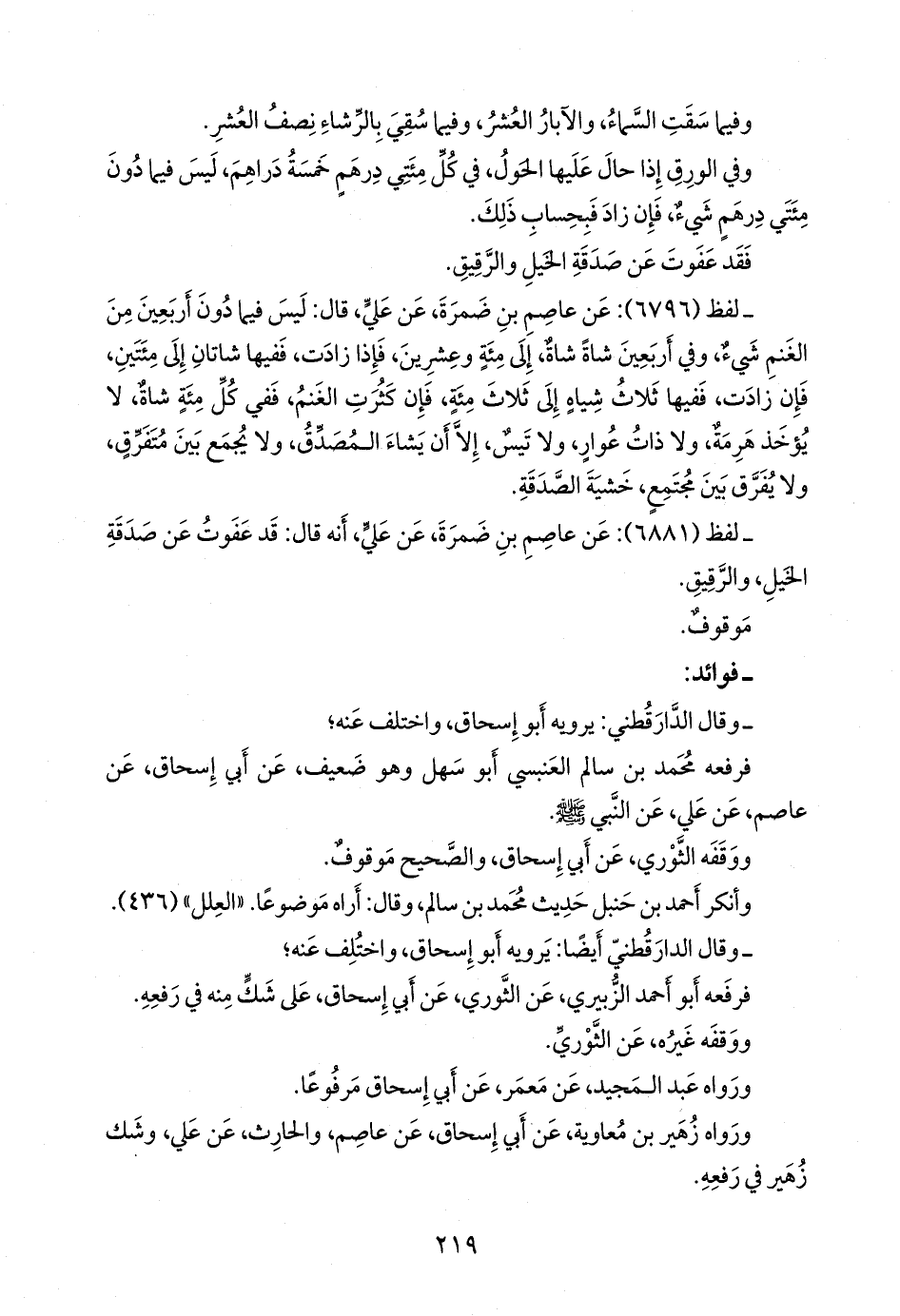 ورواه أَبو بدر شجاع بن الوليد، عن زهير، عن أبي إسحاق، عن عاصم، والحارث، عن علي، فرفعه بغير شك، إلا أنه لم يذكر في حديثه إلا زكاة البقر فقط.