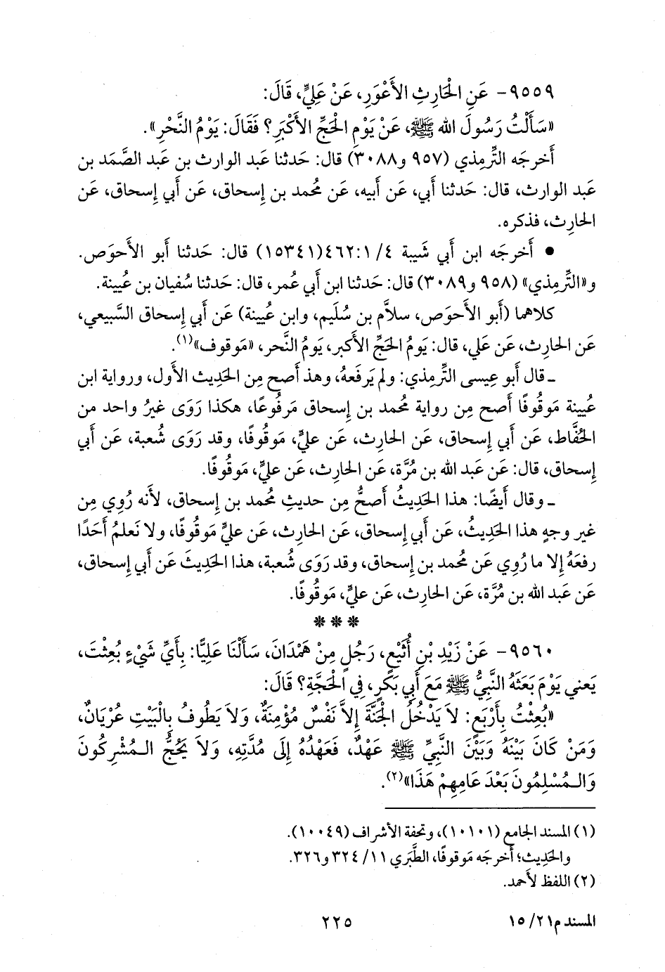 كلاهما (أَبو الأحوص سَلَّام بن سليم، وابن عُيينة) عن أبي إسحاق السبيعي، عن الحارث، عن علي، قال: يوم الحج الأكبر، يوم النحر، «موقوف» (¬١).