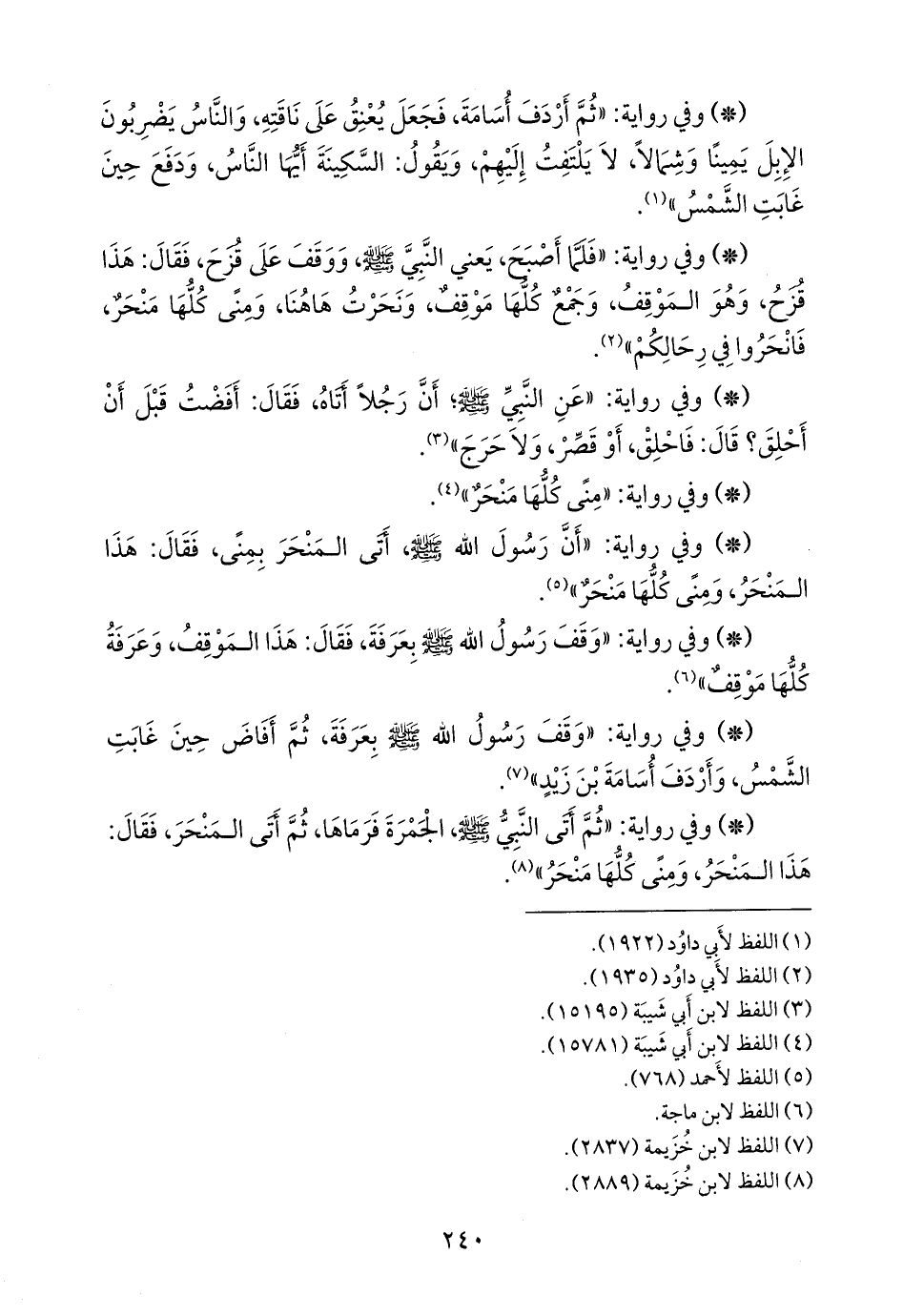 - وفي رواية: «وقف رسول الله صَلى الله عَليه وسَلم بعرفة, ثم أفاض حين غابت الشمس, وأردف أُسامة بن زيد» (¬٥).