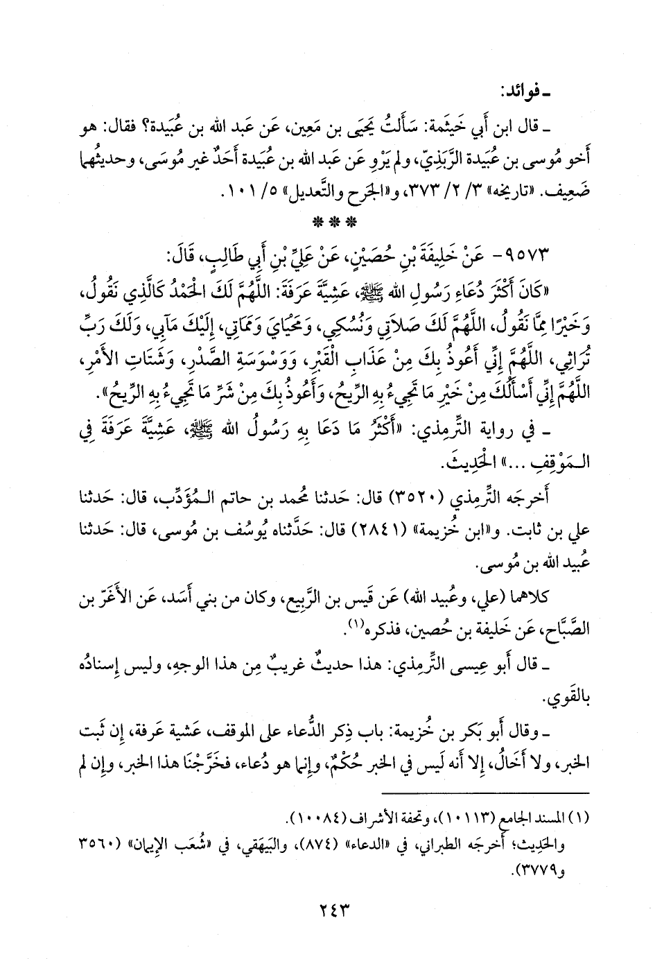- وقال ابن خزيمة: باب ذكر الدعاء على الموقف، عشية عرفة، إن ثبت الخبر، ولا أخال، إلا أنه ليس في الخبر حكم، وإنما هو دعاء، فخرجنا هذا الخبر، وإن لم