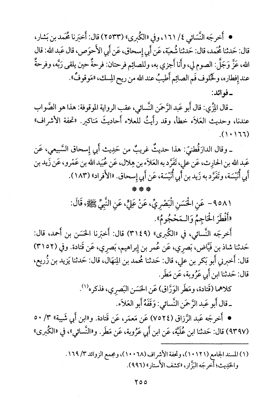 - قال أَبو عبد الرَّحمَن النَّسَائي: وقفه أَبو العلاء.