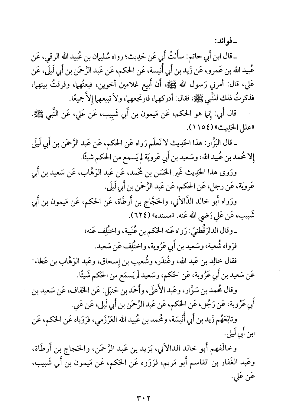 - قال البزار: هذا الحديث لا نعلم رواه عن الحكم، عن عبد الرَّحمَن بن أبي ليلى إلا محمد بن عُبيد الله، وسعيد بن أبي عَروبَة لم يسمع من الحكم شيئا.