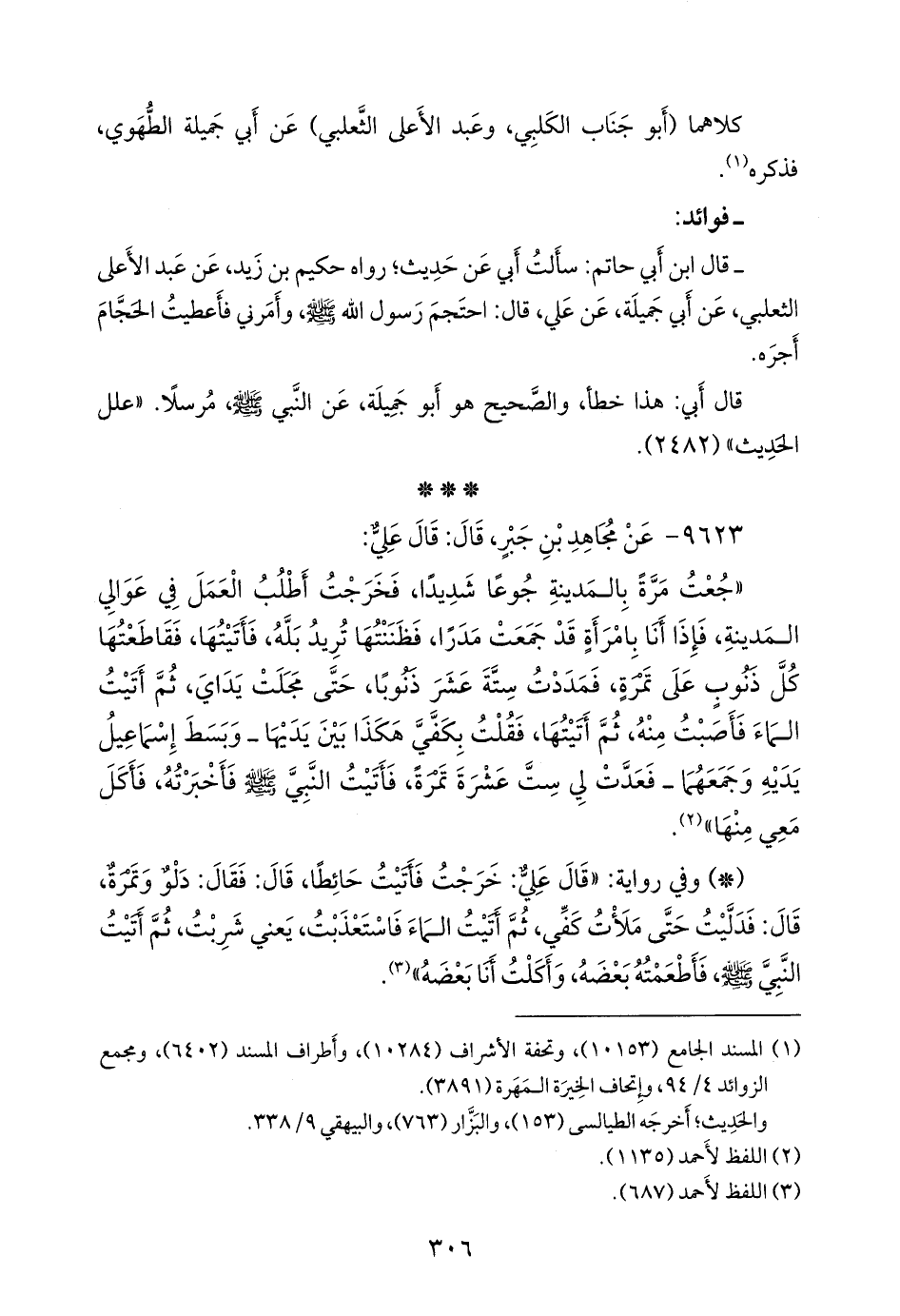 - قال عبد الرَّحمَن بن أبي حاتم الرازي: سألتُ أبي عن حديثٍ؛ رواه حكيم بن زيد، عن عبد الأعلى الثعلبي، عن أبي جميلة، عن علي، قال: احتجم رسول الله صَلى الله عَليه وسَلم وأمرني فأعطيت الحجام أجره.