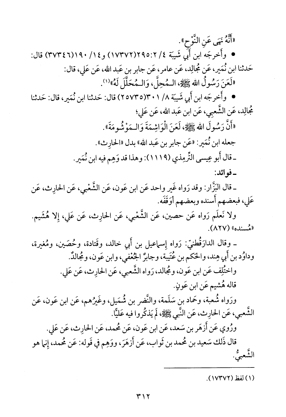 ورواه ابن نُمير، عن مجالد، عن الشعبي، عن جابر بن عبد الله، عن علي.