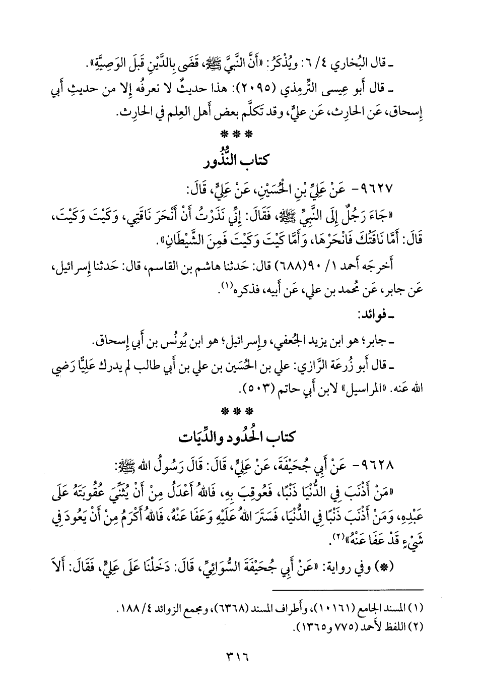 (¬١) المسند الجامع (١٠١٦١)، وأطراف المسند (٦٣٦٨)، ومَجمَع الزوائد ٤/ ١٨٨.