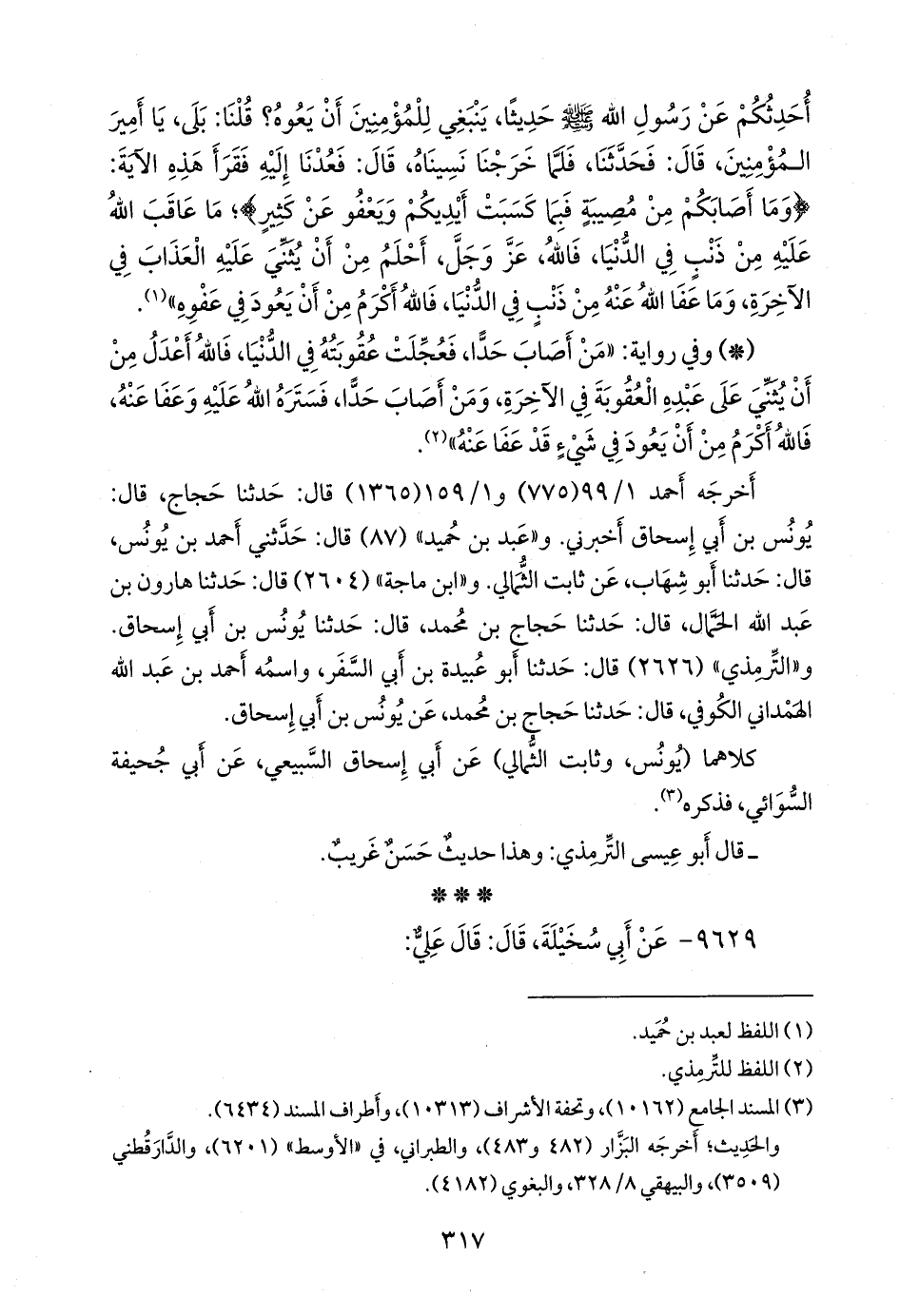 (¬٢) المسند الجامع (١٠١٦٣)، وأطراف المسند (٦٤٥٠)، والمقصد العَلي (١١٩٤)، ومَجمَع الزوائد ٧/ ١٠٣، وإتحاف الخِيرَة المَهَرة (٥٨١٢).