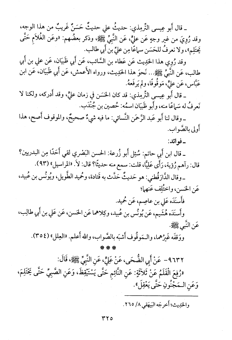 «يُرفَع القلم عن ثلاثة: عن النائم حتى يستيقظ، وعن الصبي حتى يحتلم، وعن المجنون حتى يعقل».