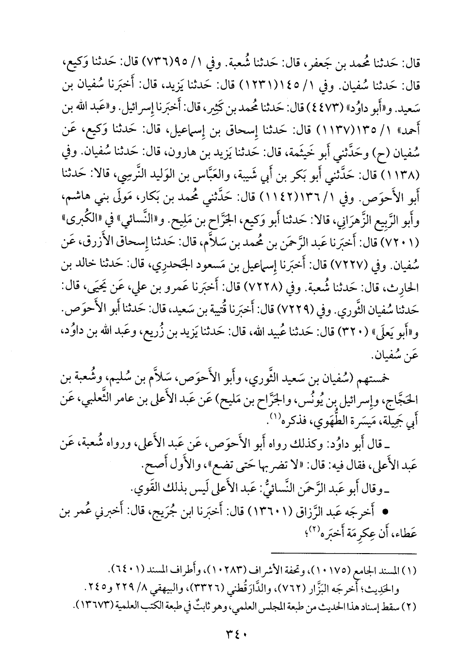 وفي ١/ ١٣٦ (١١٤٢) قال: حدثني محمد بن بكار مولى بني هاشم، وأَبو الربيع الزهراني، قالا: حدثنا أَبو وكيع، الجراح بن مليح. و «النَّسَائي» في «الكبرى» (٧٢٠١) قال: أخبرنا عبد الرَّحمَن بن محمد بن سَلَّام، قال: حدثنا إسحاق الأزرق، عن سفيان. وفي (٧٢٢٧) قال: أخبرنا إسماعيل بن مسعود الجَحدري، قال: حدثنا خالد بن الحارث، قال: حدثنا شعبة. وفي (٧٢٢٨) قال: أخبرنا عَمرو بن علي، عن يحيى، قال: حدثنا سفيان الثوري. وفي (٧٢٢٩) قال: أخبرنا قتيبة بن سعيد، قال: حدثنا أَبو الأحوص. و «أَبو يَعلى» (٣٢٠) قال: حدثنا عُبيد الله، قال: حدثنا يزيد بن زُريع، وعبد الله بن داود، عن سفيان.