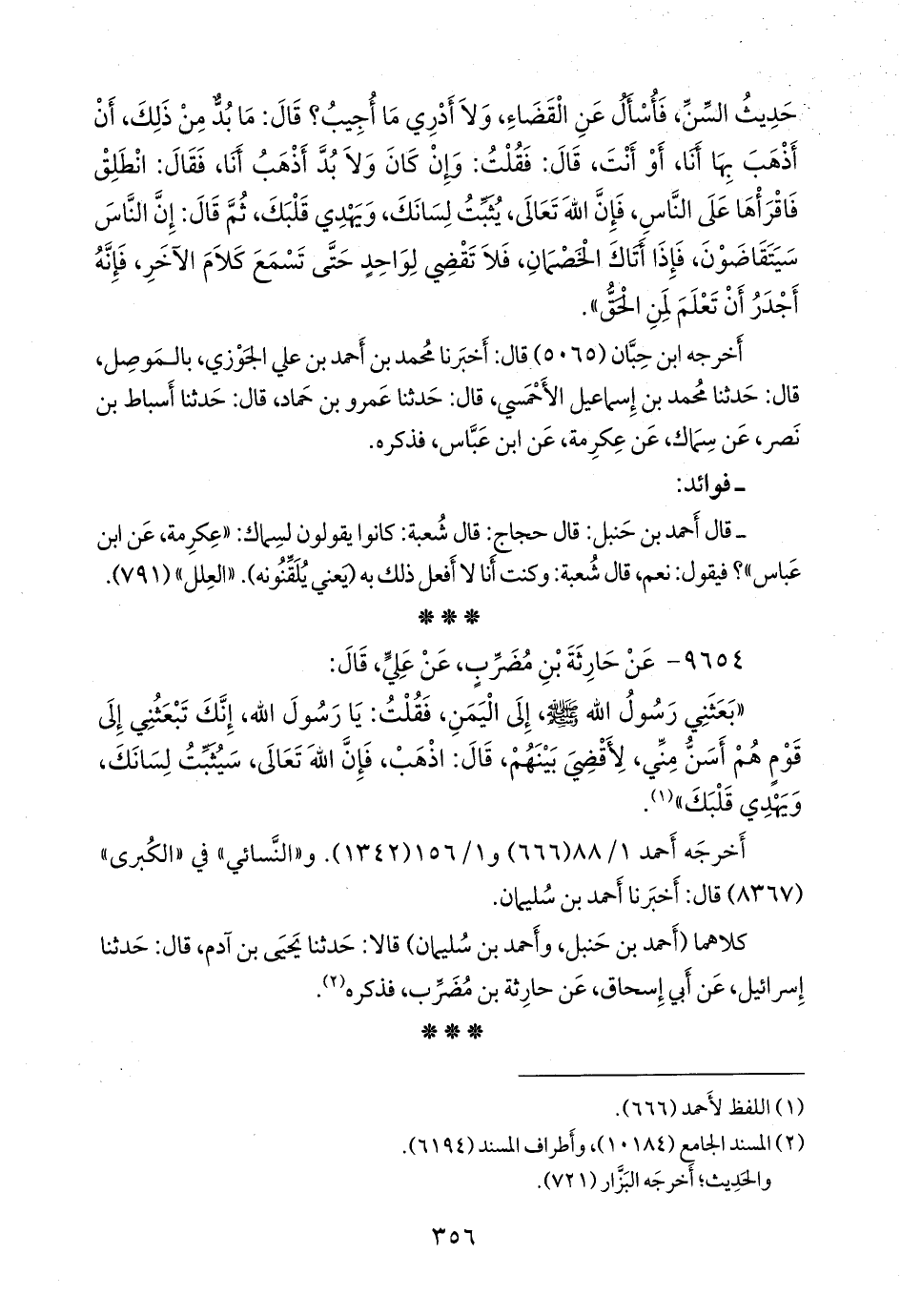 كلاهما (أحمد بن حنبل، وأحمد بن سليمان) عن يحيى بن آدم، قال: حدثنا إسرائيل، عن أبي إسحاق، عن حارثة بن مضرب، فذكره (¬٢).