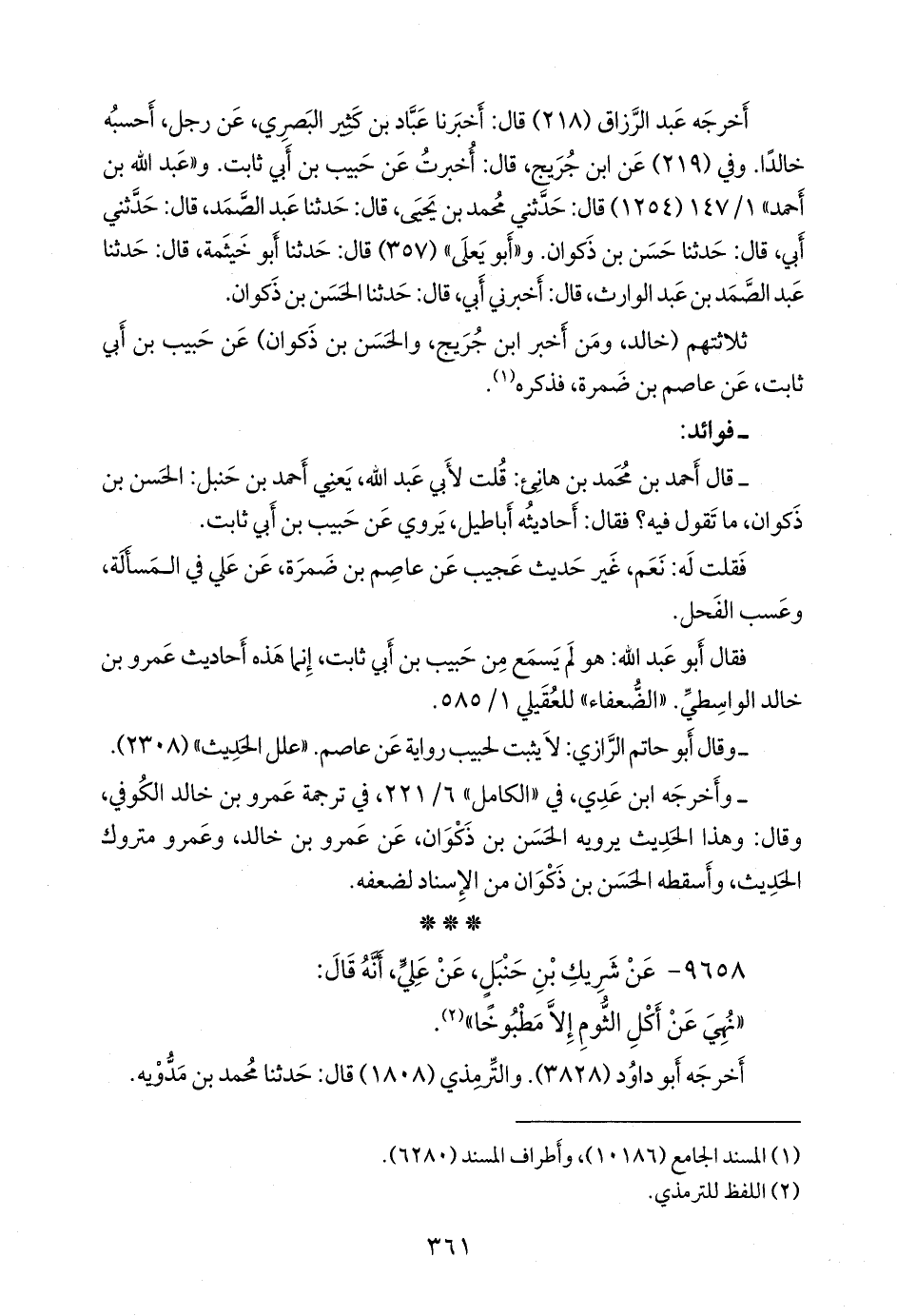 • وأخرجه التِّرمِذي (١٨٠٩) قال: حدثنا هَنَّاد، قال: حدثنا وكيع، عن أبيه، عن أبي إسحاق، عن شريك بن حنبل، عن علي، قال: أنه كره أكل الثوم إلا مطبوخا. «موقوف» (¬٢).