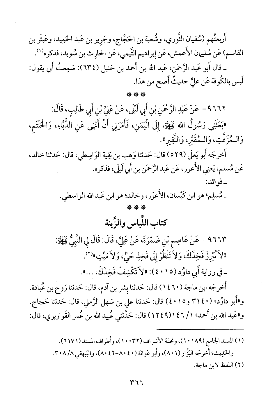 ثلاثتهم (رَوح بن عُبادة، وحجاج بن محمد، وأَبو خالد البَيسري) عن ابن جُريج، عن حبيب بن أَبي ثابت، عن عاصم بن ضَمرة، فذكره (¬٢).