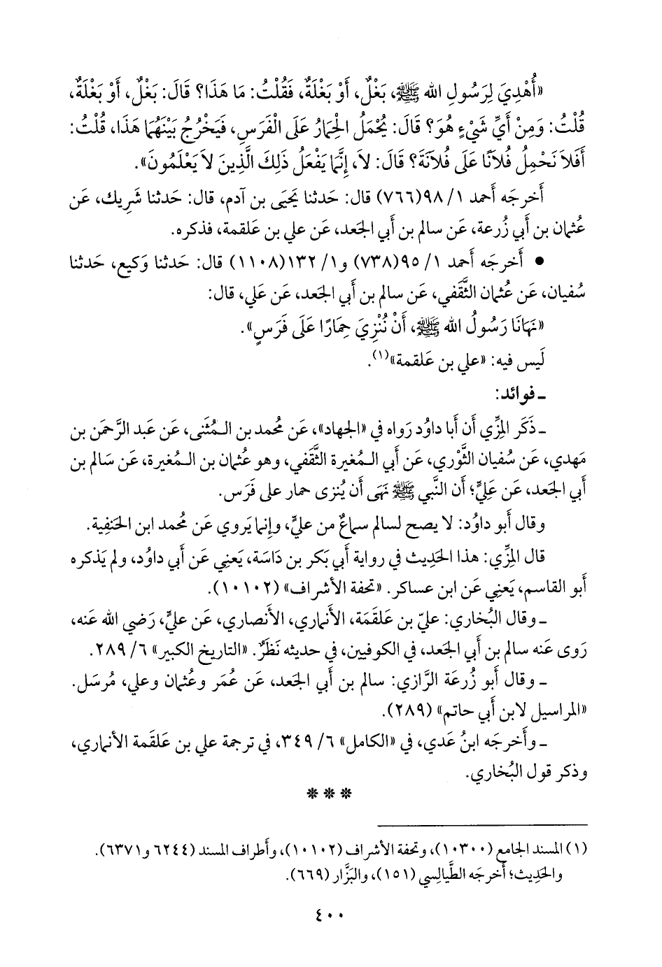 - وقال أَبو زُرعَة الرازي: سالم بن أبي الجعد، عن عمر وعثمان وعلي، مرسل. «المراسيل لابن أبي حاتم» (٢٨٩).