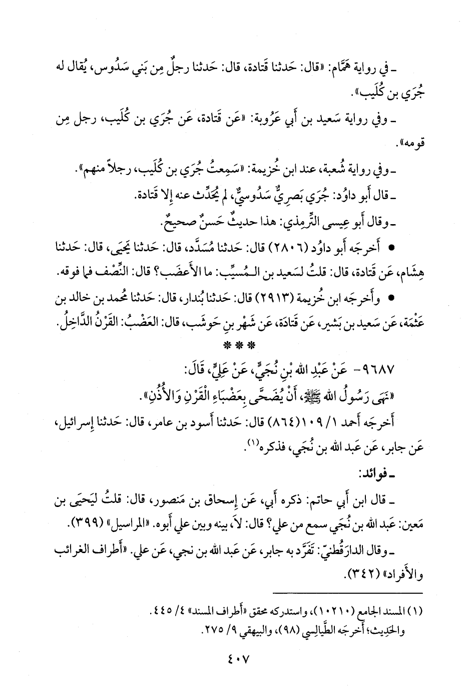 - وقال الدارقُطني: تفرد به جابر، عن عبد الله بن نجي، عن علي. «أطراف الغرائب والأفراد» (٣٤٢).
