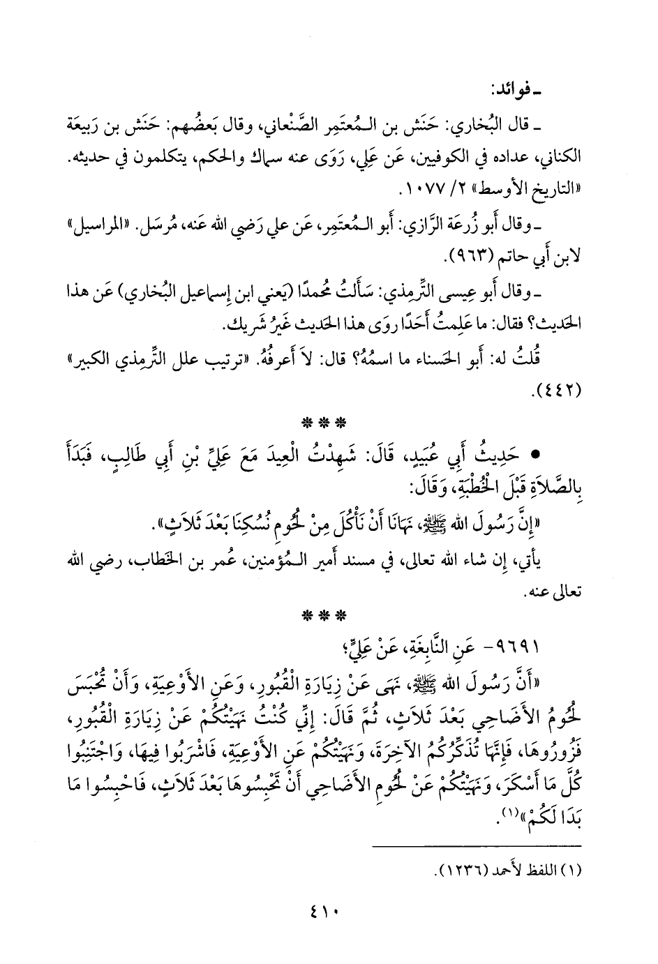 • حديث أبي عبيد، قال: شهدت العيد مع علي بن أبي طالب، فبدأ بالصلاة قبل الخطبة، وقال: