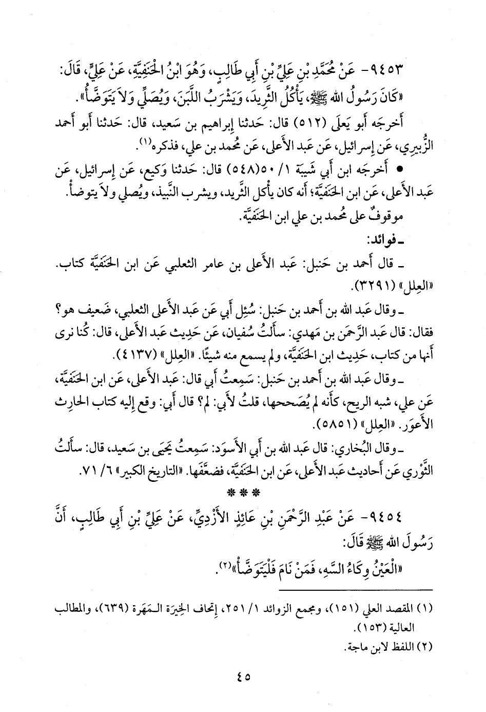 (¬١) المقصد العَلي (١٥١)، ومَجمَع الزوائد ١/ ٢٥١، إتحاف الخِيرَة المَهَرة (٦٣٩)، والمطالب العالية (١٥٣).