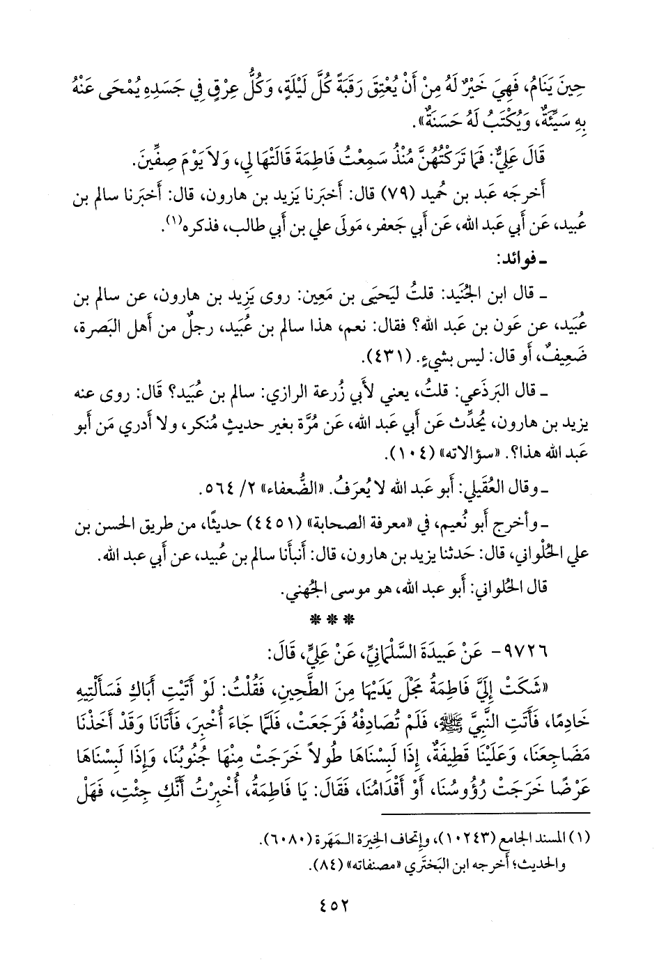 - قلنا: إِسناده ضعيفٌ؛ قال ابن الجنيد: قلت ليحيى بن مَعين: روى يزيد بن هارون، عن سالم بن عبيد، عن عون بن عبد الله؟ فقال: نعم، هذا سالم بن عبيد، رجل من أهل البصرة، ضعيف, أو قال: ليس بشيء. «سؤالاته» (٤٣١).