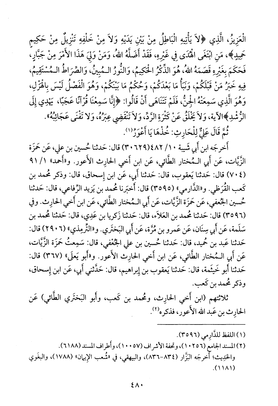 ثلاثتهم (ابن أخي الحارث، ومحمد بن كعب، وأَبو البَختَري الطائي) عن الحارث بن عبد الله الأعور، فذكره (¬٢).