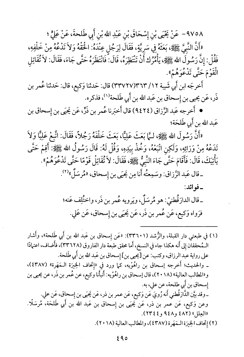 (¬١) في طبعتي دار القبلة، والرشد (٣٣٦٠١): «عن إسحاق بن عبد الله بن أبي طلحة»، وأشار المحققان إلى أنه هكذا جاء في النسخ، أما محقق طبعة دار الفاروق (٣٣٦٢٨)، فأضاف، اعتمادا على رواية عبد الرزاق، وكتب: عن [يحيى بن] إسحاق بن عبد الله بن أبي طلحة.