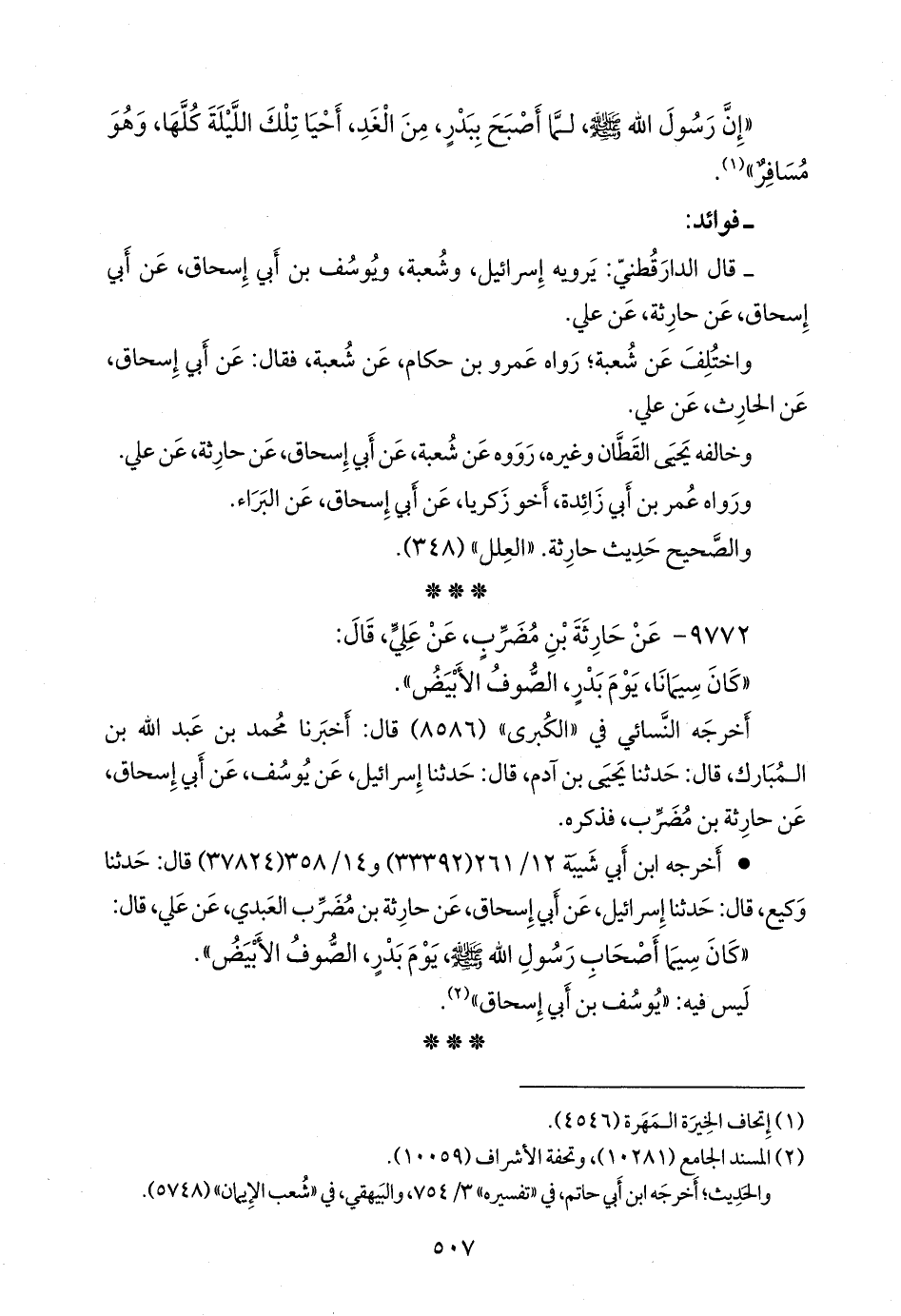 - قال الدارقُطني: يرويه إسرائيل، وشعبة، ويوسف بن أبي إسحاق، عن أبي إسحاق، عن حارثة، عن علي.