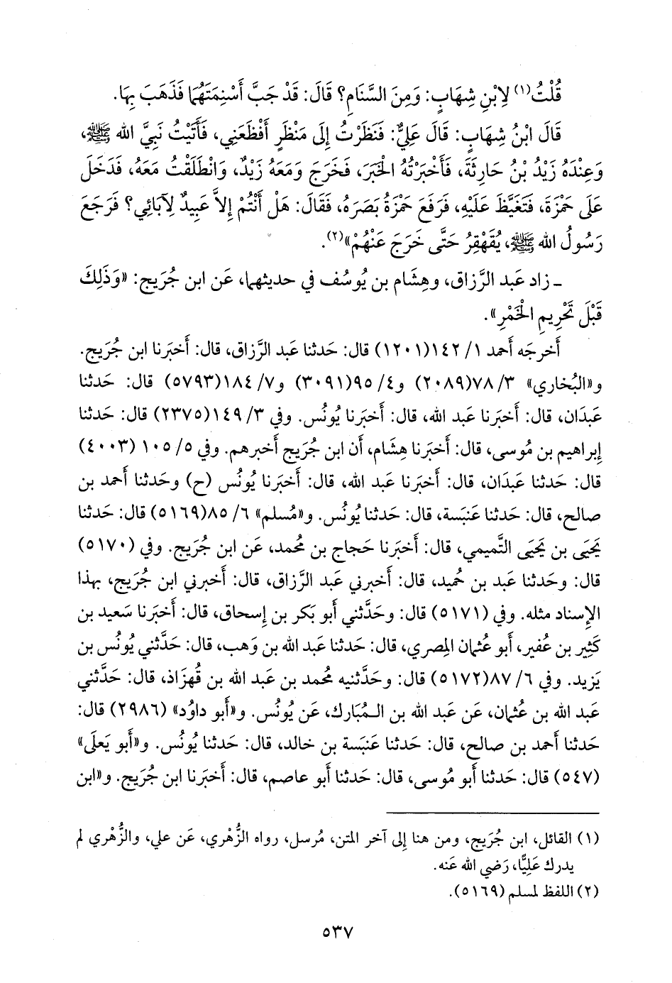 كلاهما (عبد الملك بن جُريج، ويونس بن يزيد) عن ابن شهاب الزُّهْري, عن علي بن الحسين بن علي, عن أبيه حسين بن علي، فذكره (¬١).
