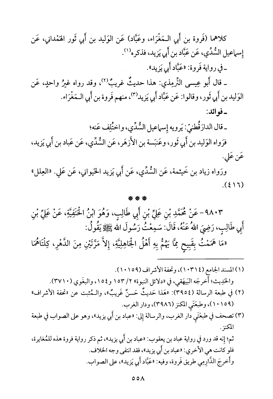 فرواه الوليد بن أَبي ثَور، وعنبَسة بن الأَزهر، عن السُّدِّي، عن عباد بن أَبي يزيد، عن علي، ورواه زياد بن خيثمة، عن السُّدِّي، عن أَبي يزيد الخَيواني، عن علي. «العلل» (٤١٦).