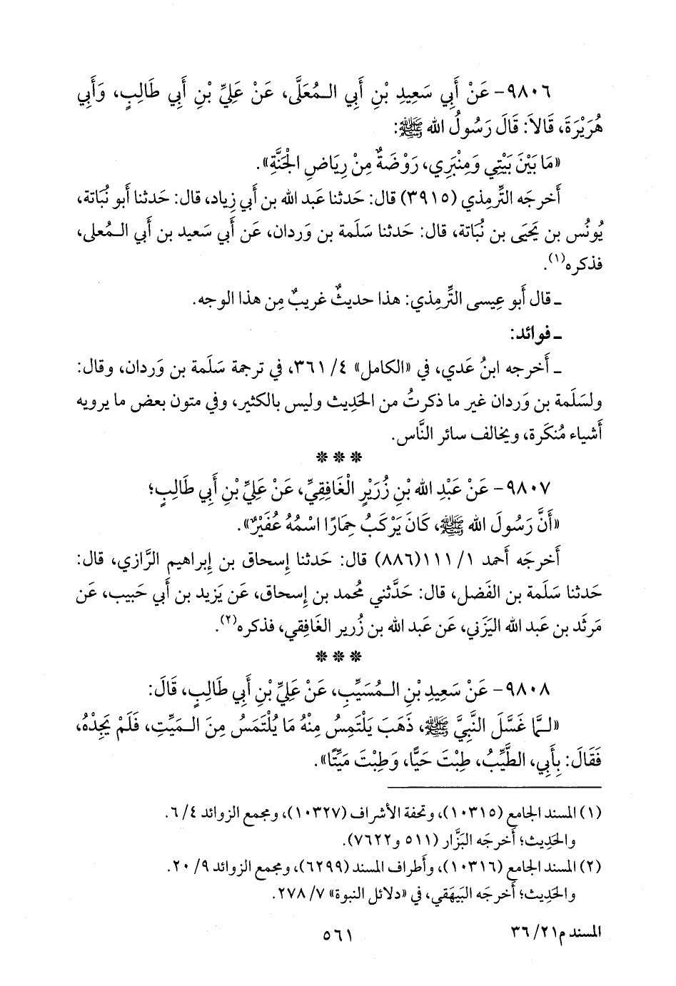 (¬١) المسند الجامع (١٠٣١٦)، وأطراف المسند (٦٢٩٩)، ومَجمَع الزوائد ٩/ ٢٠.