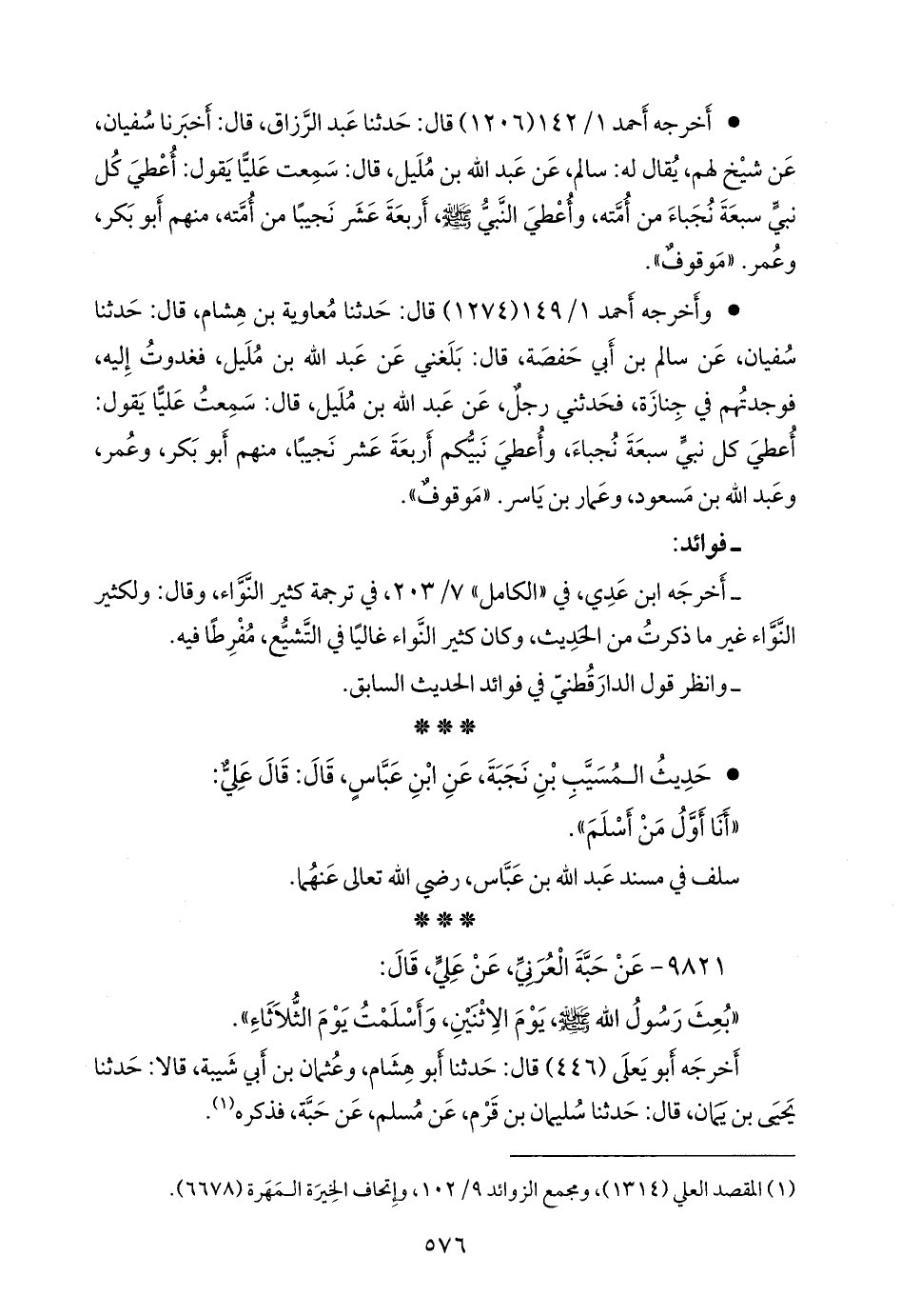(¬١) المقصد العَلي (١٣١٤)، ومَجمَع الزوائد ٩/ ١٠٢، وإتحاف الخِيرَة المَهَرة (٦٦٧٨).