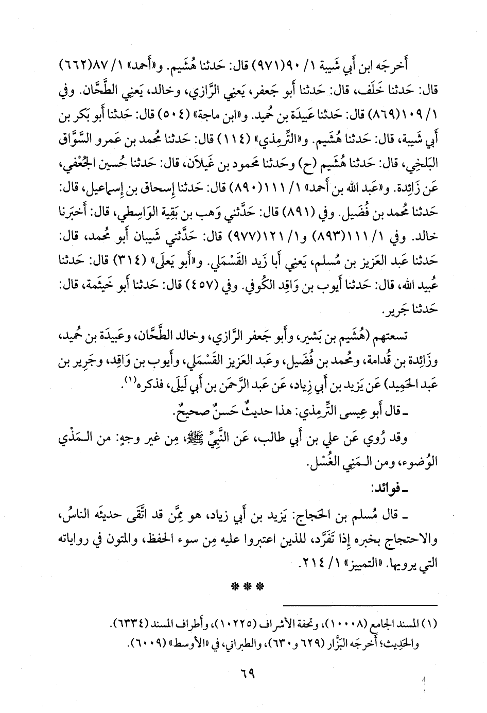 تسعتهم (هُشيم بن بشير، وأَبو جعفر الرازي، وخالد الطحان، وعَبيدة بن حُميد، وزائدة بن قُدَامة، ومحمد بن فضيل، وعبد العزيز القسملي، وأيوب بن واقد، وجرير بن عبد الحميد) عن يزيد بن أبي زياد الكوفي، عن عبد الرَّحمَن بن أبي ليلى، فذكره (¬١).