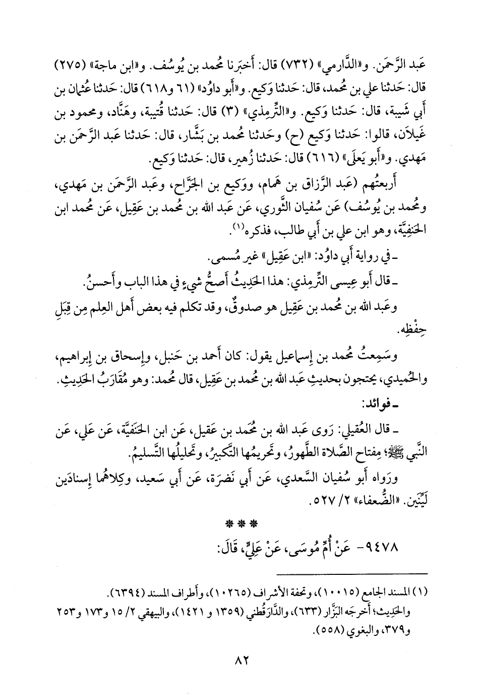 أربعتهم (عبد الرزاق بن همام، ووكيع بن الجراح، وعبد الرَّحمَن بن مهدي، ومحمد بن يوسف) عن سفيان الثوري، عن عبد الله بن محمد بن عَقيل، عن محمد ابن الحنفية، وهو ابن علي بن أبي طالب، فذكره (¬١).