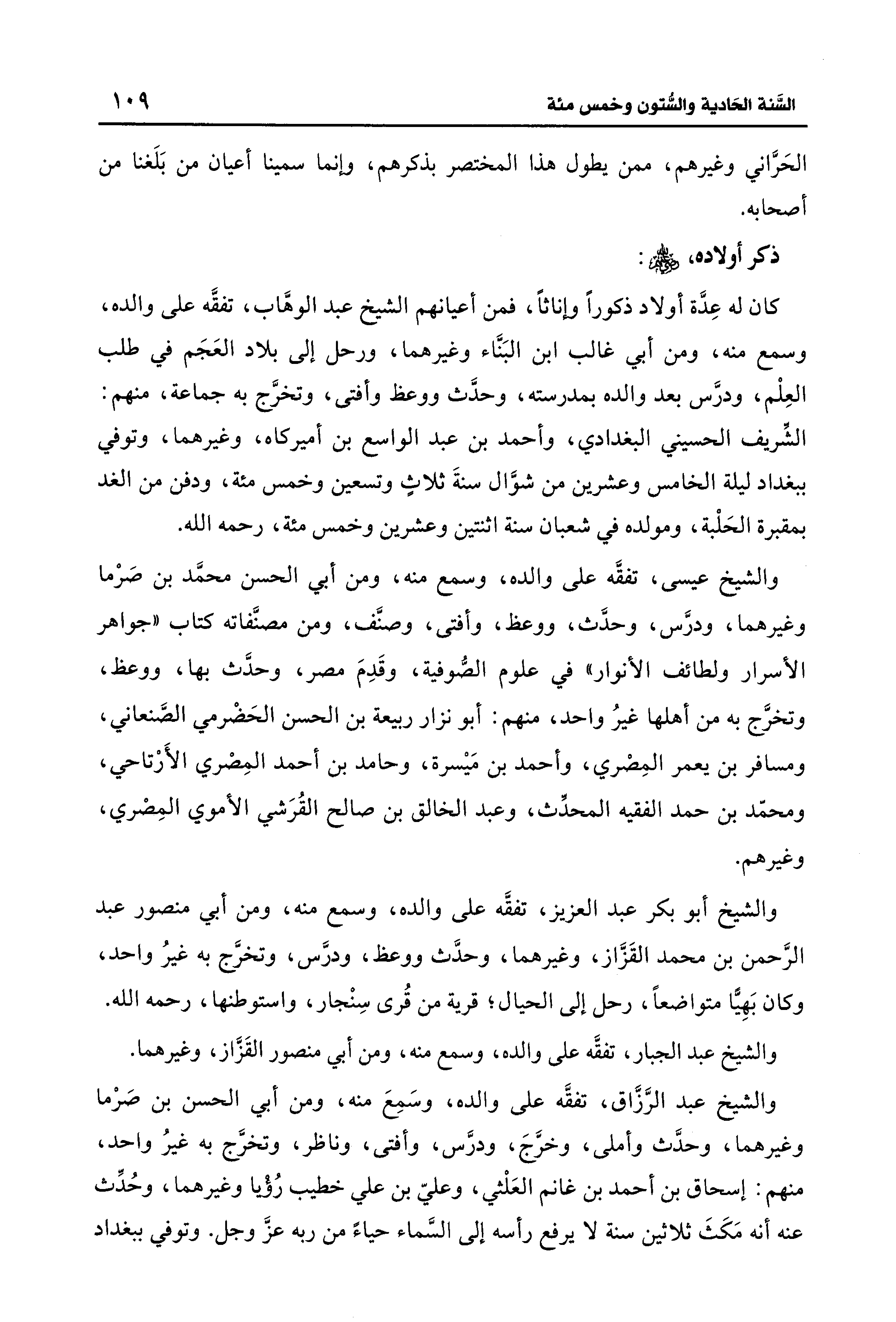 الحَرَّاني وغيرهم، ممن يطول هذا المختصر بذكرهم، وإنما سمينا أعيان من بَلَغنا من أصحابه.
