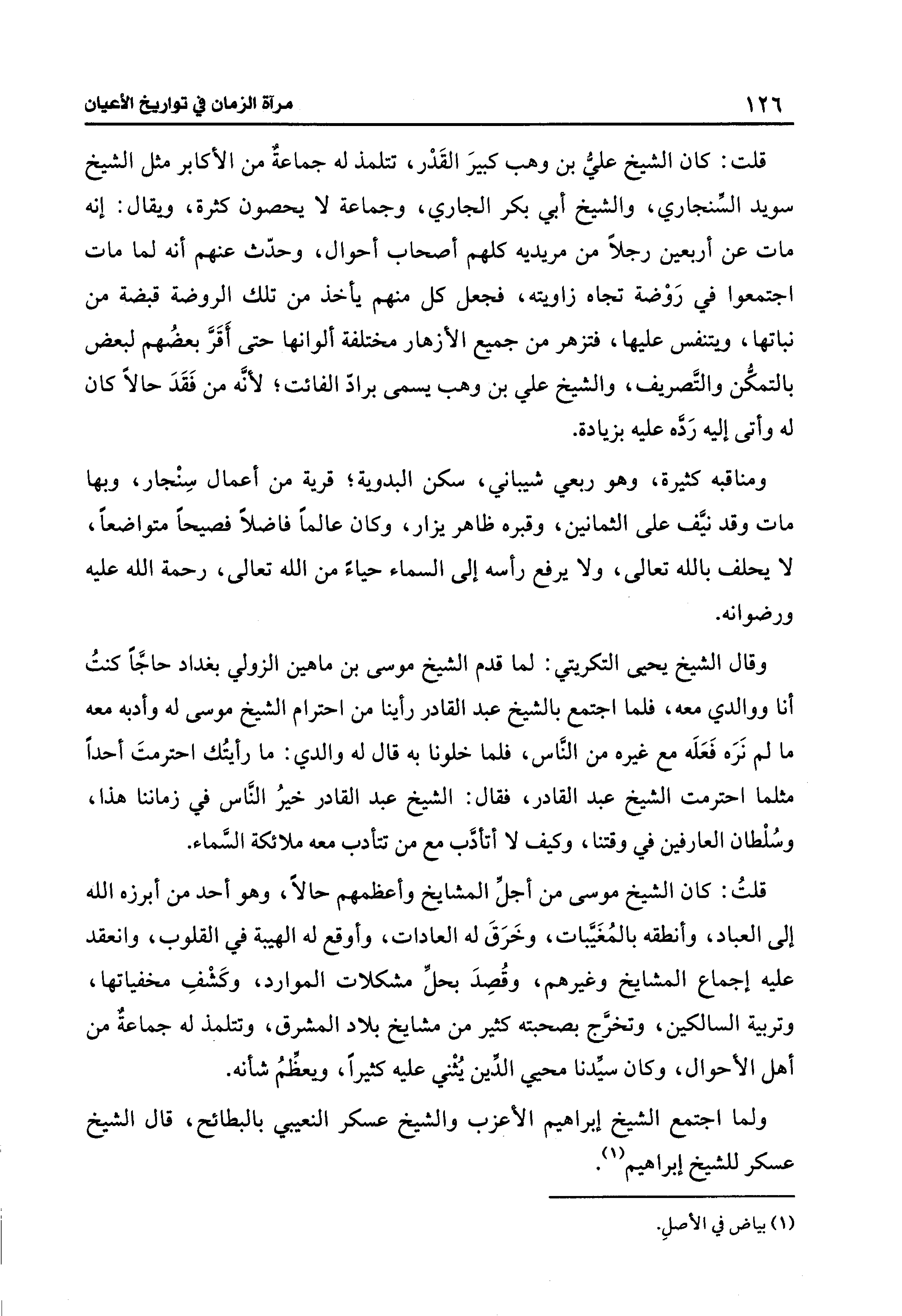 قلت: كان الشيخ عليُّ بن وهب كبيرَ القَدْر، تتلمذ له جماعةٌ من الأكابر مثل الشيخ سويد السِّنجاري، والشيخ أبي بكر الجاري، وجماعة لا يحصون كثرة، ويقال: إنه مات عن أربعين رجلًا من مريديه كلهم أصحاب أحوال، وحدّث عنهم أنَّه لما مات اجتمعوا في رَوْضة تجاه زاويته، فجعل كل منهم يأخذ من تلك الروضة قبضة من نباتها، ويتنفس عليها، فتزهر من جميع الأزهار مختلفة ألوانها حتى أَقَرَّ بعضُهم لبعض بالتمكُّن والتَّصريف، والشيخ علي بن وهب يسمى برادّ الفائت؛ لأنَّه من فَقَدَ حالًا كان له وأتى إليه رَدَّه عليه بزيادة.