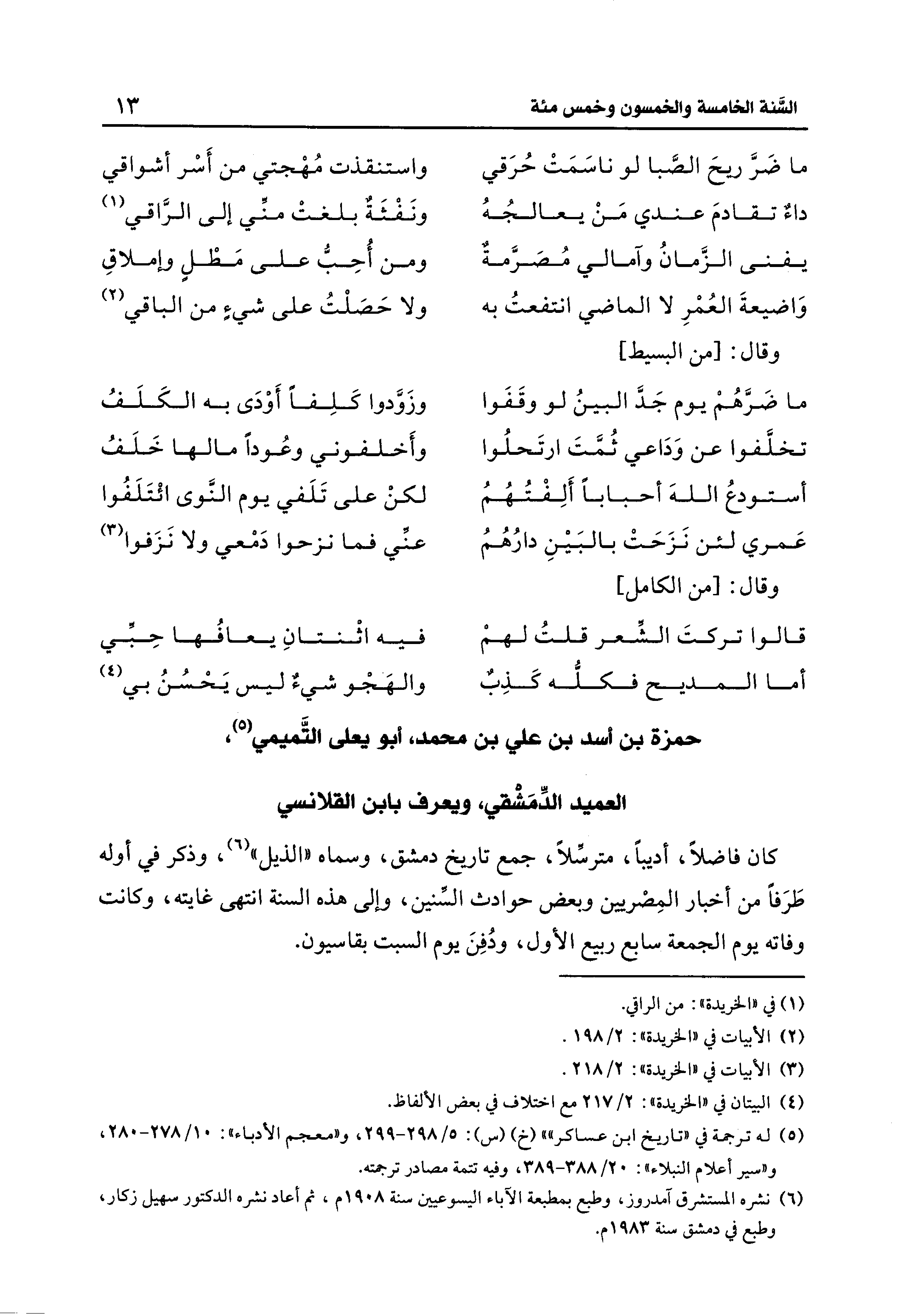 حمزة بن أسد بن علي بن محمد، أبو يعلى التَّميمي (¬5)، العميد الدِّمَشْقي، ويعرف بابن القلانسي