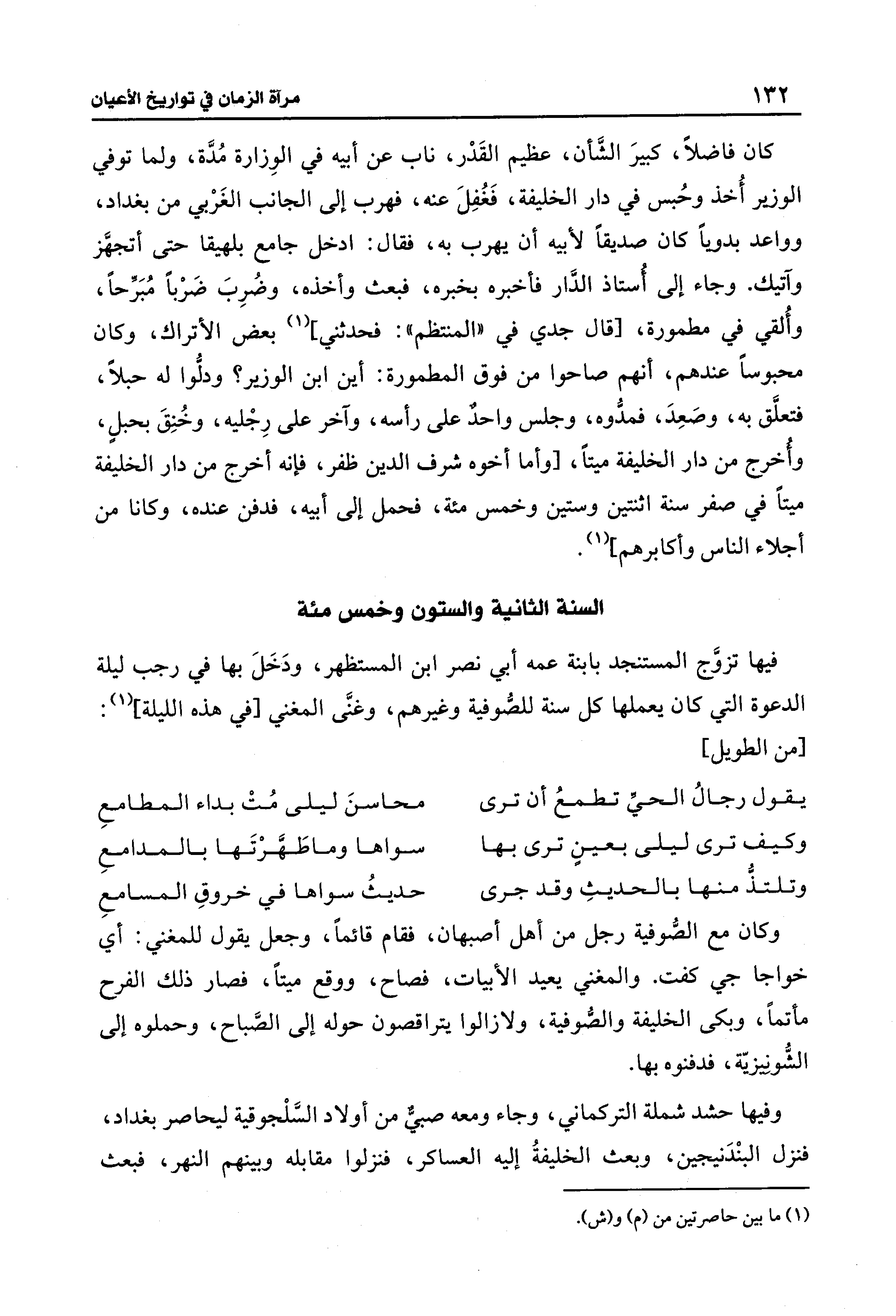 فيها تزوَّج المستنجد بابنة عمه أبي نصر بن المستظهر، ودَخَلَ بها في رجب ليلة الدعوة التي كان يعملها كل سنة للصُّوفية وغيرهم، وغنَّى المغني [في هذه الليلة] (¬1): [من الطويل]