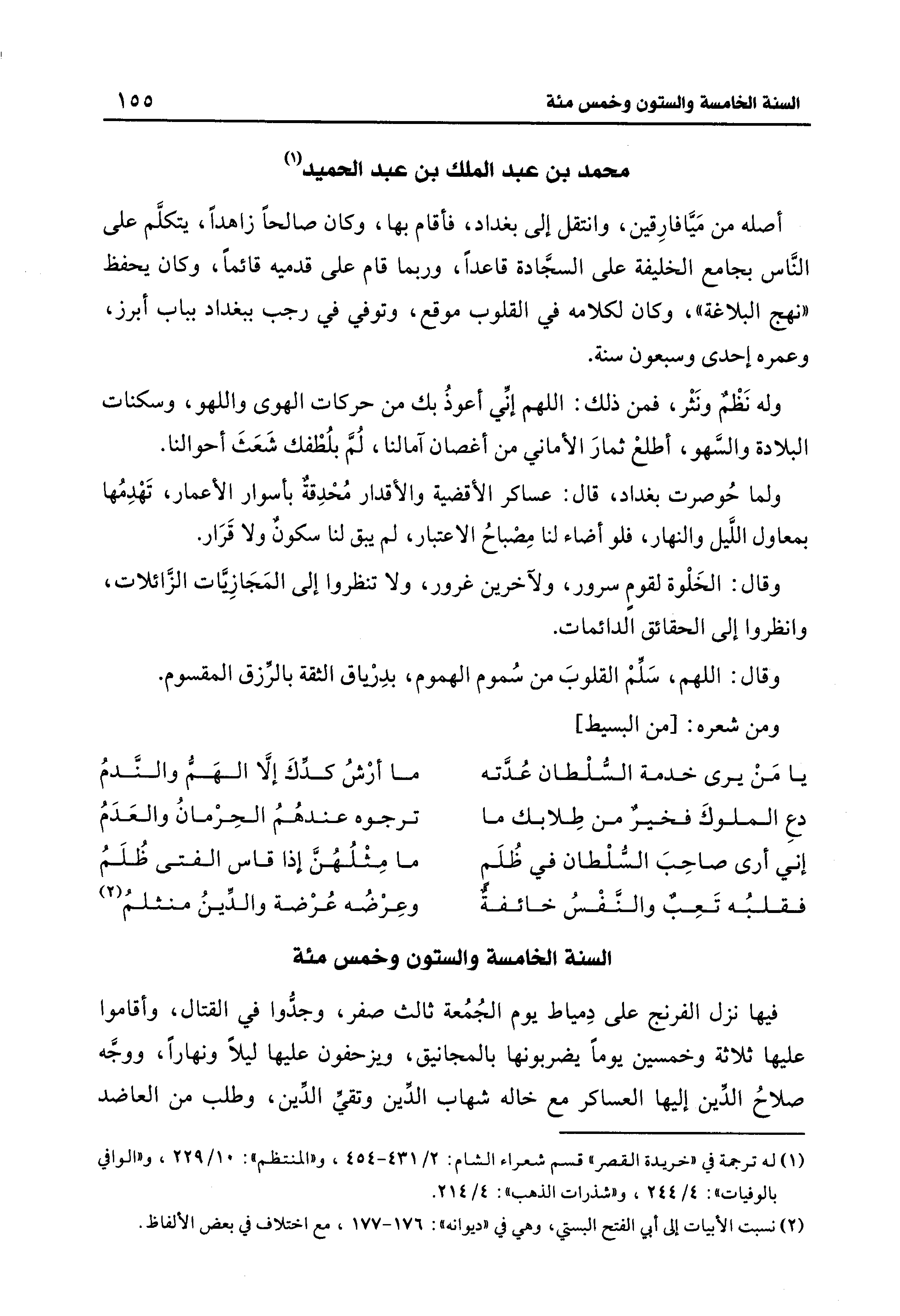 (¬1) له ترجمة في "خريدة القصر" قسم شعراء الشام: 2/ 431 - 454، و"المنتظم": 10/ 229، و"الوافي بالوفيات": 4/ 244، و"شذرات الذهب": 4/ 214.