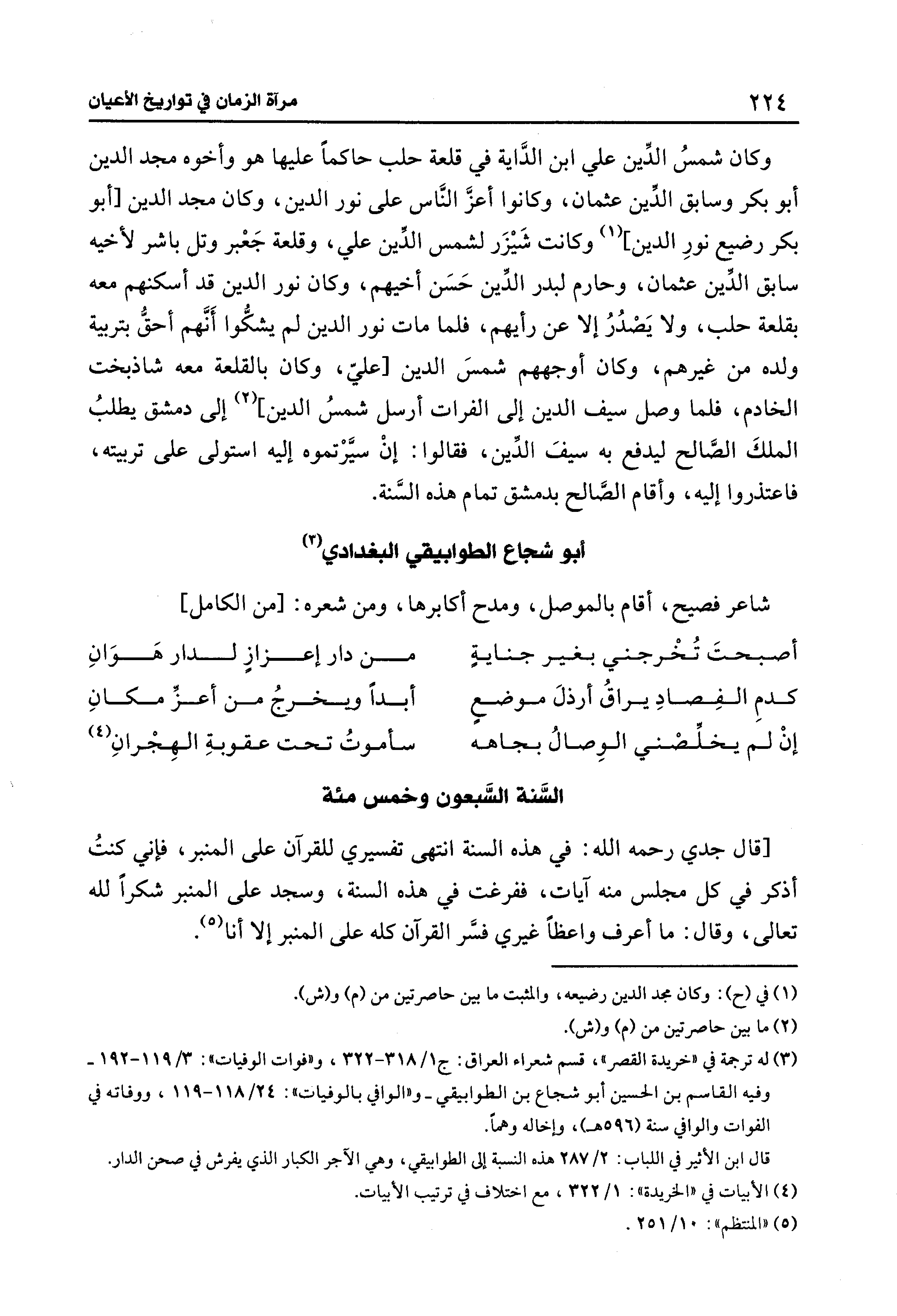 (¬3) له ترجمة في "خريدة القصر"، قسم شعراء العراق: ج 1/ 318 - 322، و "فوات الوفيات": 3/ 119 - 192 - وفيه القاسم بن الحسين أبو شجاع بن الطوابيقي- و"الوافي بالوفيات": 24/ 118 - 119، ووفاته في الفوات والوافي سنة (596 هـ)، وإخاله وهمًا.