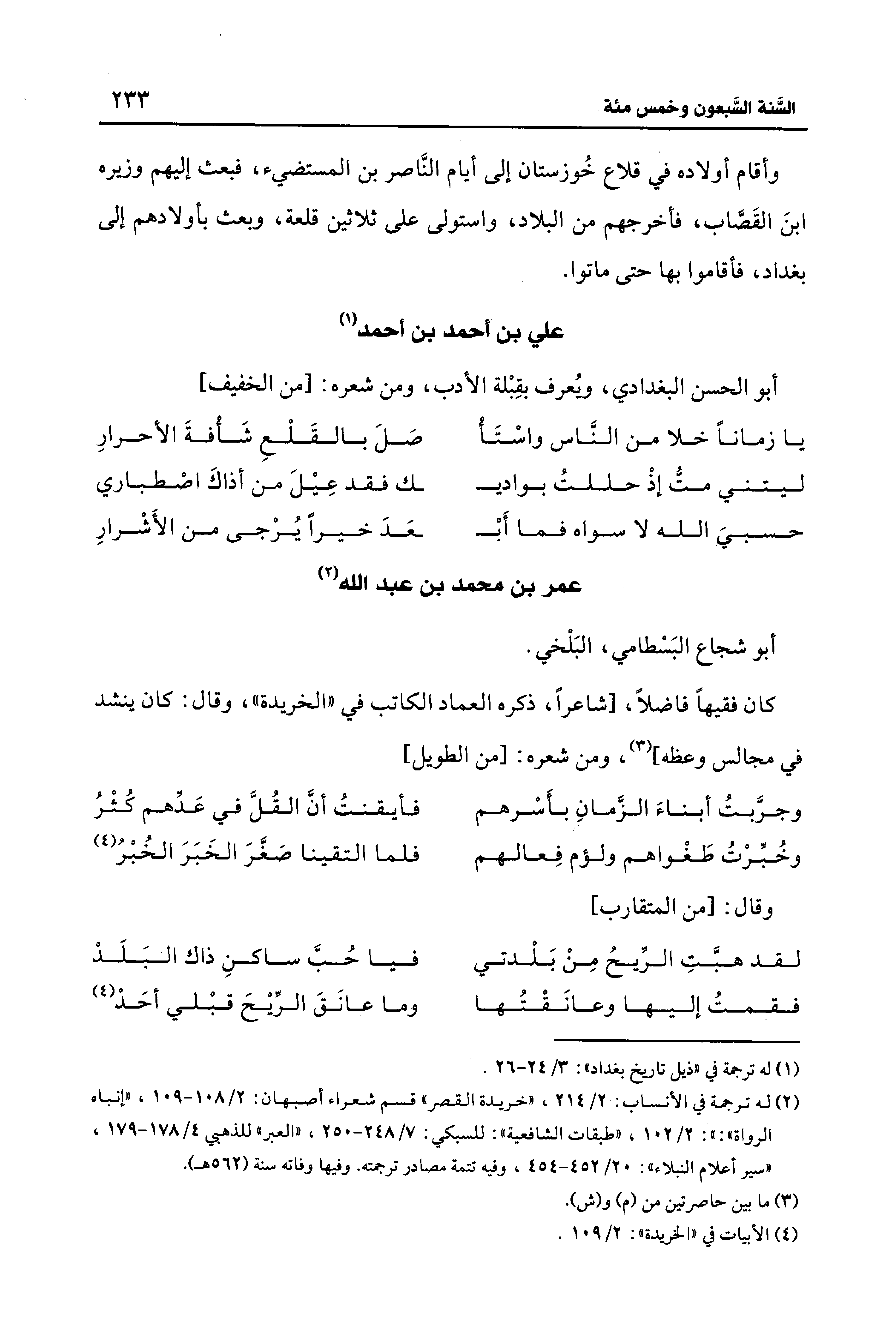 (¬4) الأبيات في "الخريدة": 2/ 109.