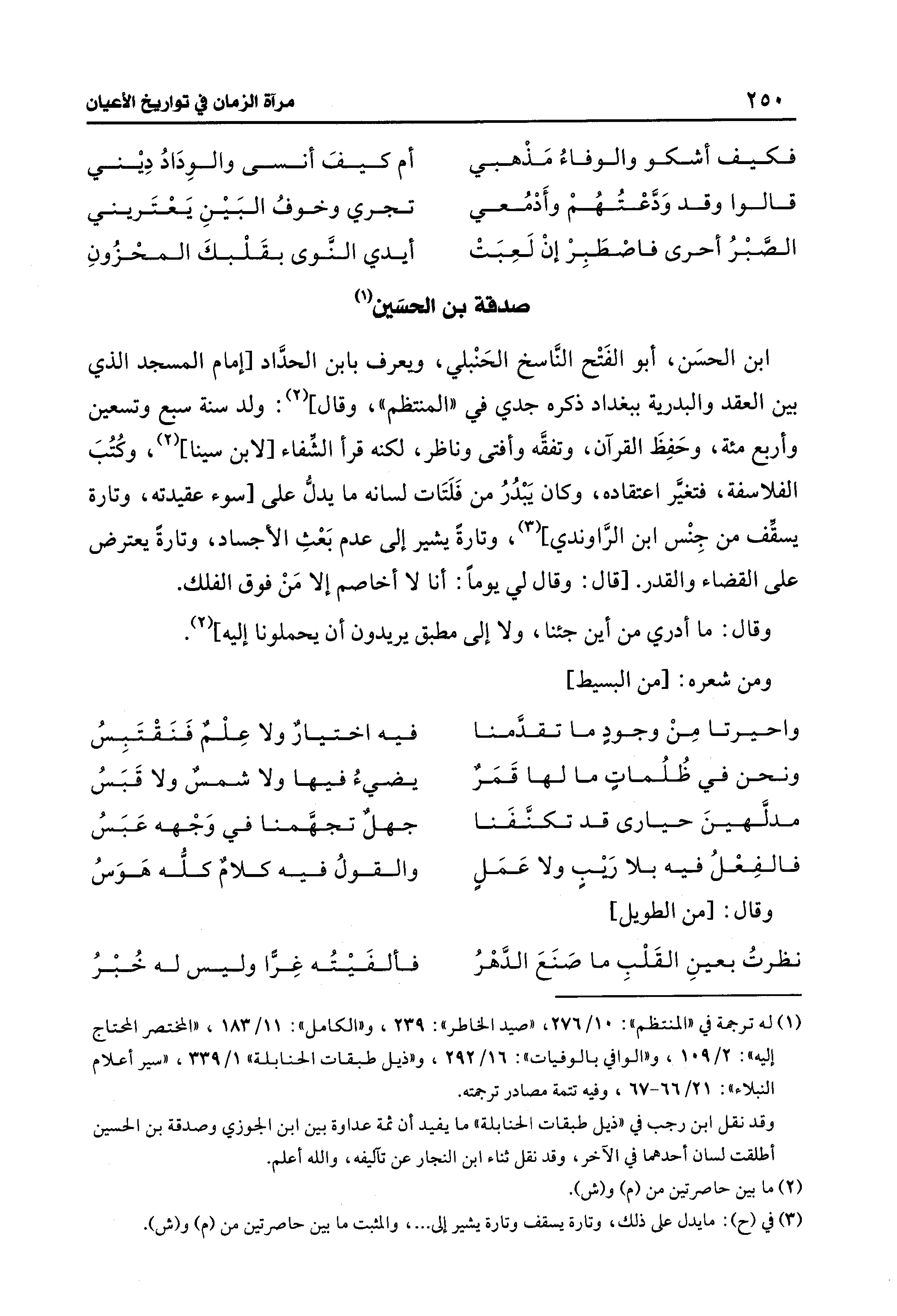 (¬1) له ترجمة في "المنتظم": 10/ 276، "صيد الخاطر": 239، و"الكامل": 11/ 183، "المختصر المحتاج إليه": 2/ 109، و"الوافي بالوفيات": 16/ 292، و "ذيل طبقات الحنابلة" 1/ 339، "سير أعلام النبلاء": 21/ 66 - 67، وفيه تتمة مصادر ترجمته.