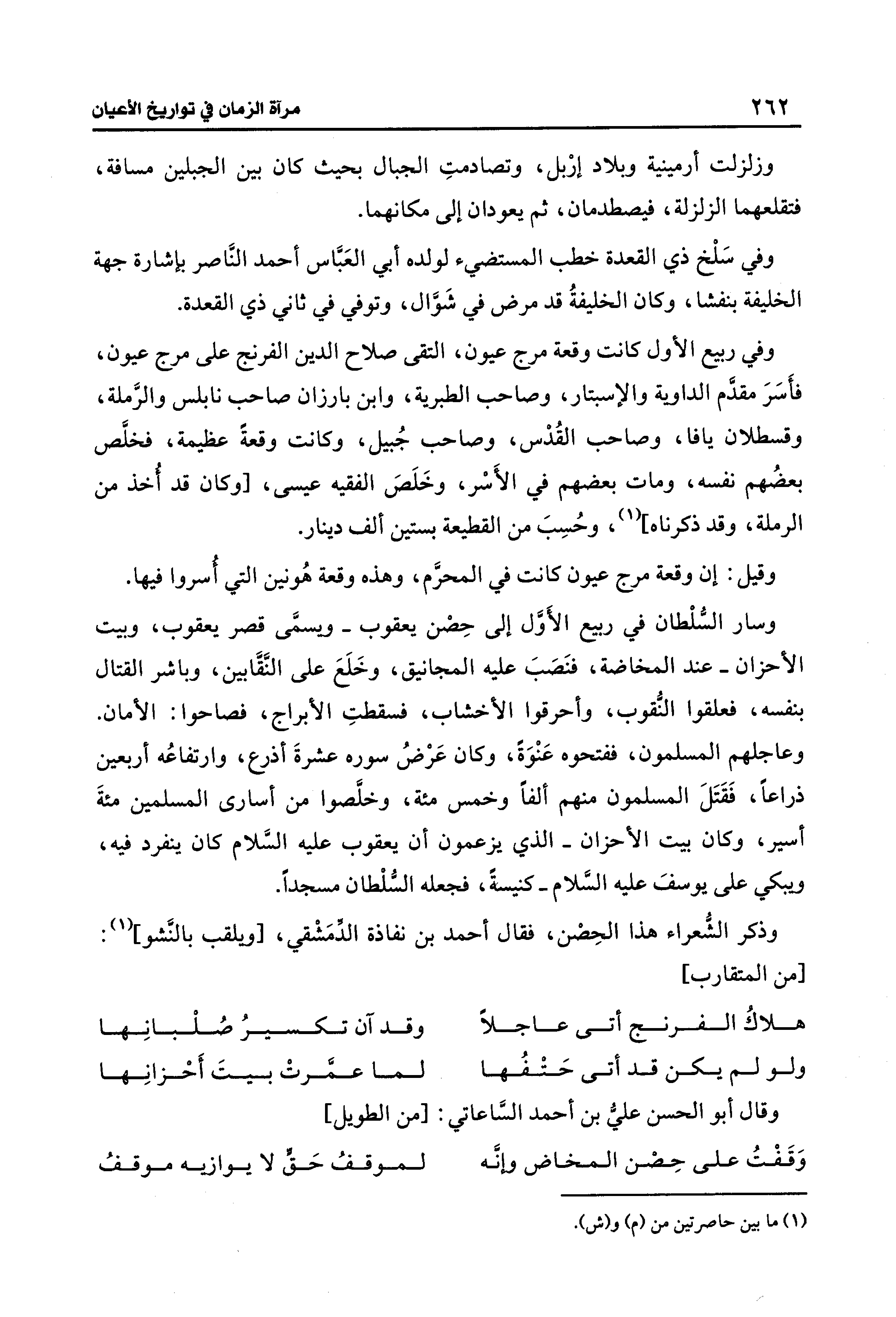 وذكر الشُّعراء هذا الحِصْن، فقال أحمد بن نفاذة الدِّمَشْقي، [ويلقب بالنَّشو] (1): [من المتقارب]