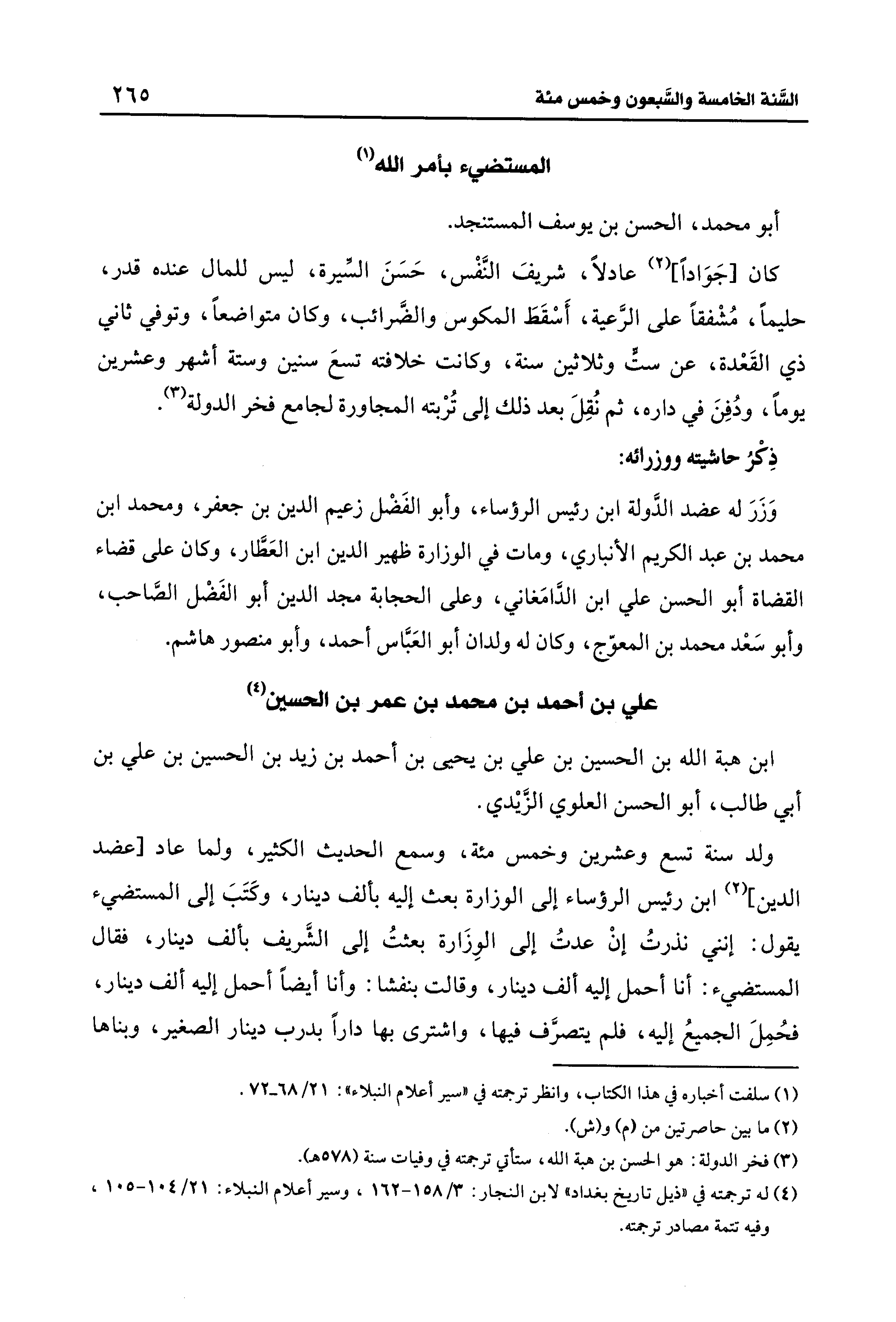 (¬3) فخر الدولة: هو الحسن بن هبة الله، ستأتي ترجمته في وفيات سنة (578 هـ).