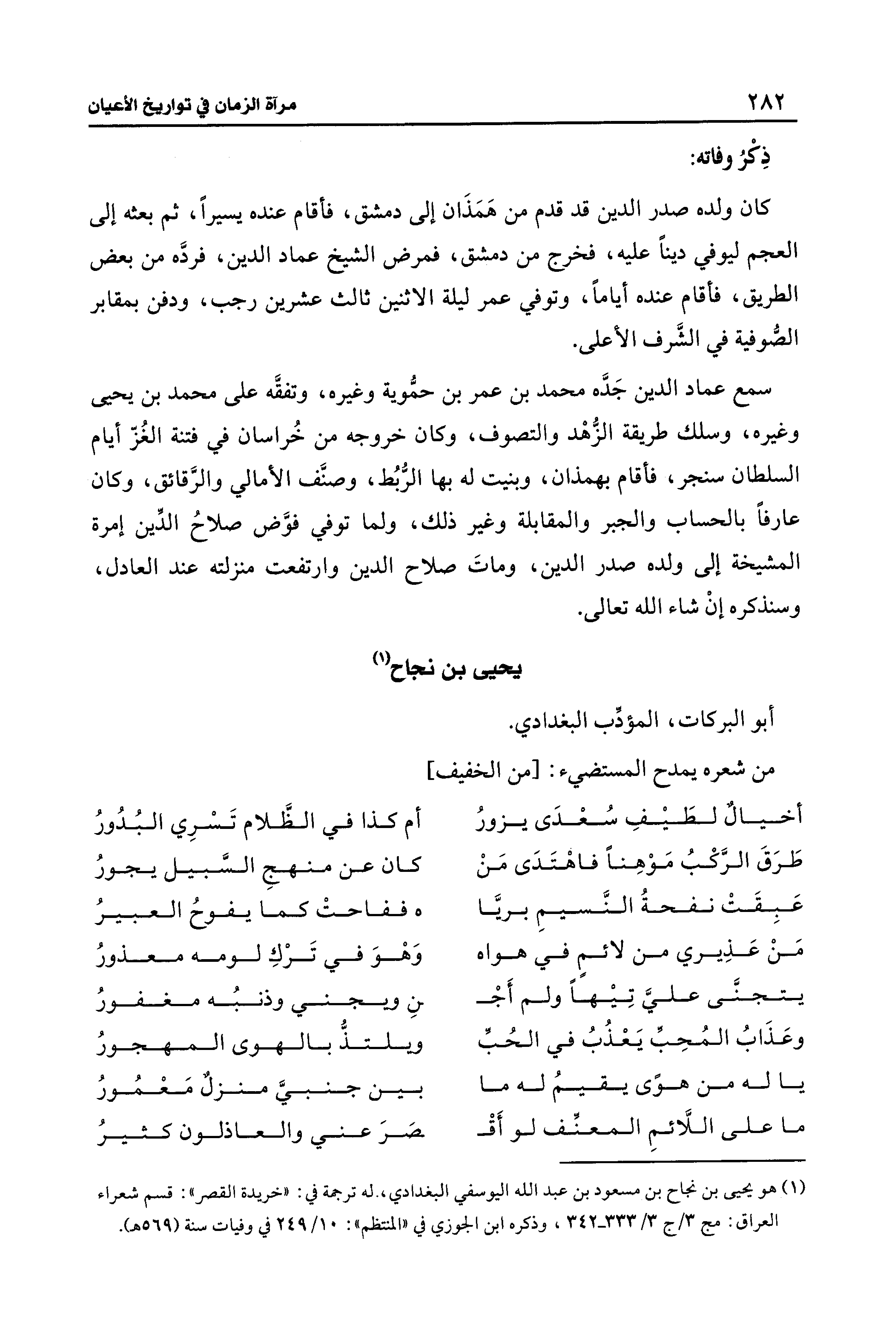 (¬1) هو يحيى بن نجاح بن مسعود بن عبد الله اليوسفي البغدادي، له ترجمة في: "خريدة القصر": قسم شعراء العراق: مج 3 / ج 3/ 333 - 342، وذكره ابن الجوزي في "المنتظم": 10/ 249 في وفيات سنة (569 هـ).