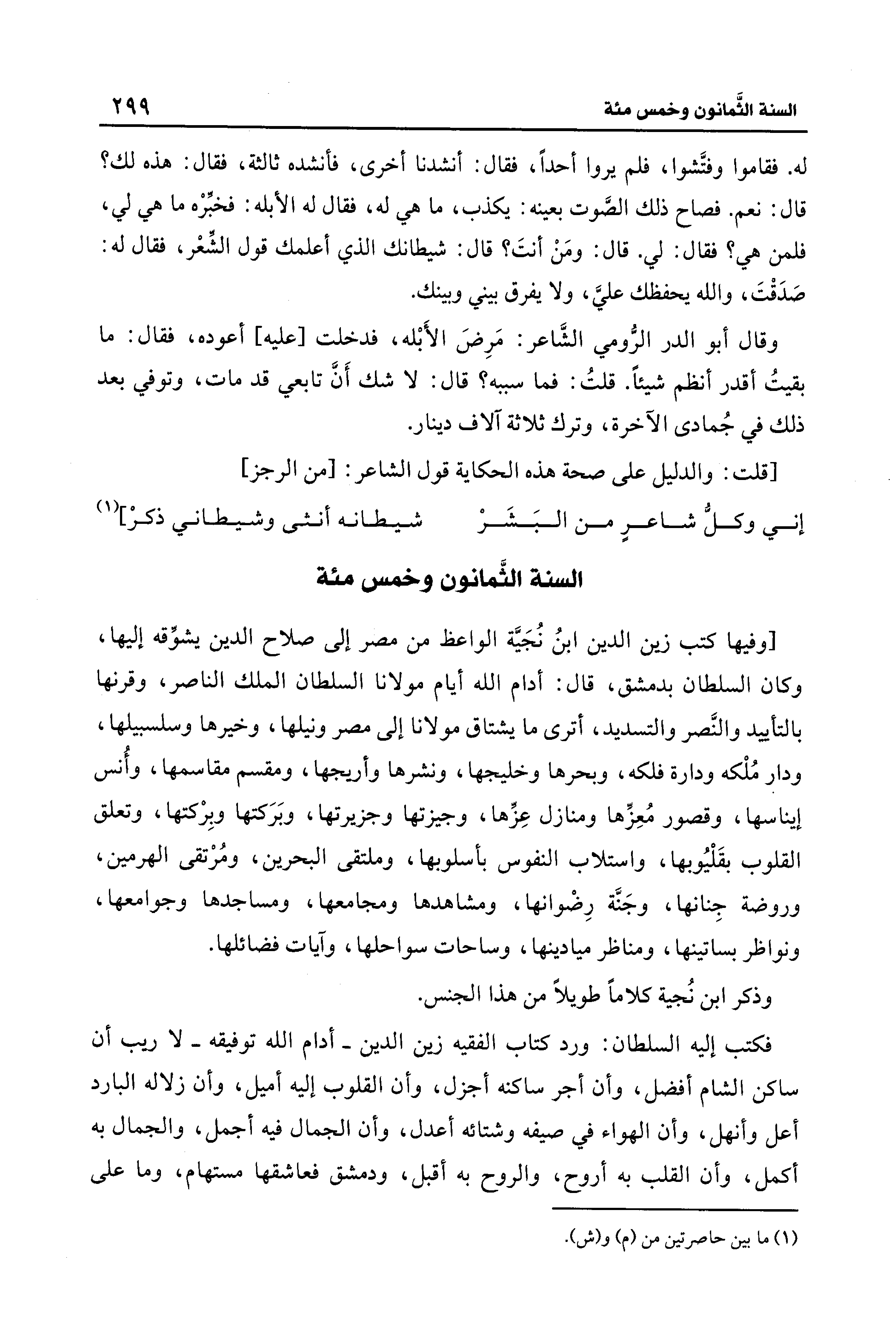 [وفيها كتب زين الدين ابنُ نُجَيَّة الواعظ من مصر إلى صلاح الدين يشوِّقه إليها، وكان السلطان بدمشق، قال: أدام الله أيام مولانا السلطان الملك الناصر، وقرنها بالتأييد والنَّصر والتسديد، أترى ما يشتاق مولانا إلى مصر ونيلها، وخيرها وسلسبيلها، ودار مُلْكه ودارة فلكه، وبحرها وخليجها، ونشرها وأريجها، ومقسم مقاسمها، وأُنس إيناسها، وقصور مُعِزِّها ومنازل عِزِّها، وجيزتها وجزيرتها، وبَرَكتها وبِرْكتها، وتعلق القلوب بقَلْيُوبها، واستلاب النفوس بأسلوبها، وملتقى البحرين، ومُرْتقى الهرمين، وروضة جِنانها، وجَنَّة رِضْوانها، ومشاهدها ومجامعها، ومساجدها وجوامعها، ونواظر بساتينها، ومناظر ميادينها، وساحات سواحلها، وآيات فضائلها.