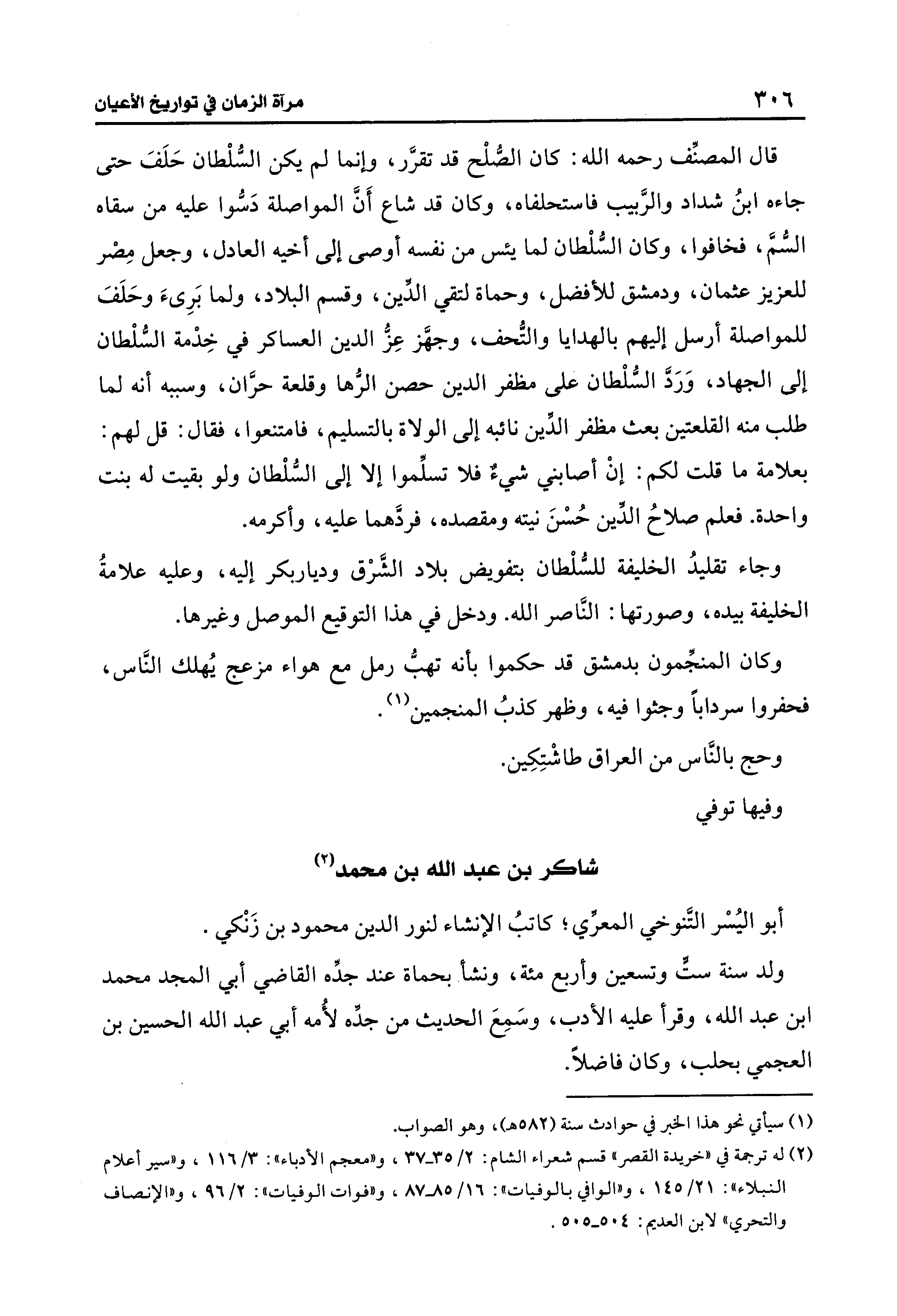 (¬2) له ترجمة في "خريدة القصر" قسم شعراء الشام: 2/ 35 - 37، و"معجم الأدباء": 3/ 116، و"سير أعلام النبلاء": 21/ 145، و"الوافي بالوفيات": 16/ 85 - 87، و "فوات الوفيات": 2/ 96، و"الإنصاف والتحري" لابن العديم: 504 - 505.