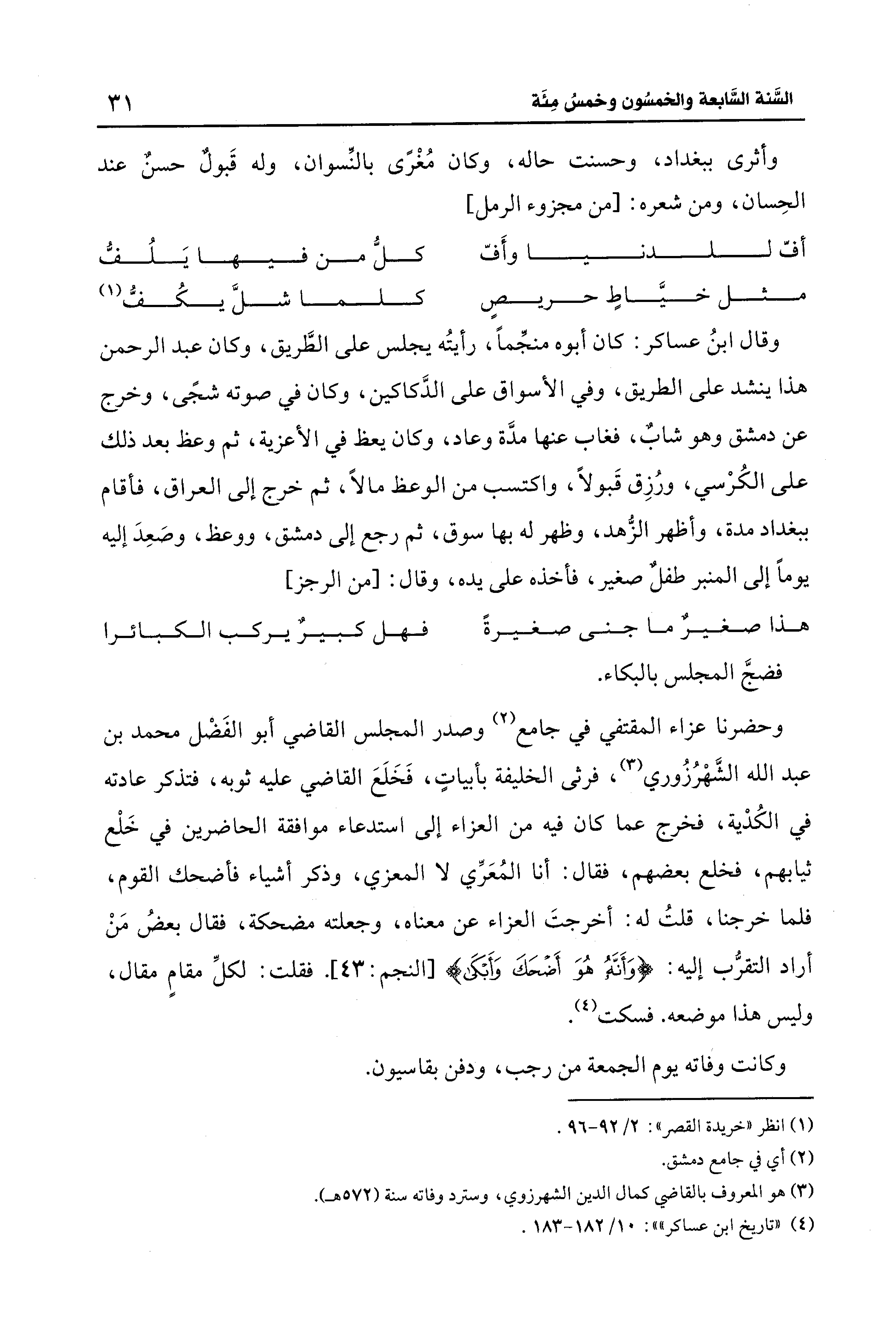 (¬3) هو المعروف بالقاضي كمال الدين الشهرزوي، وسترد وفاته سنة (572 هـ).