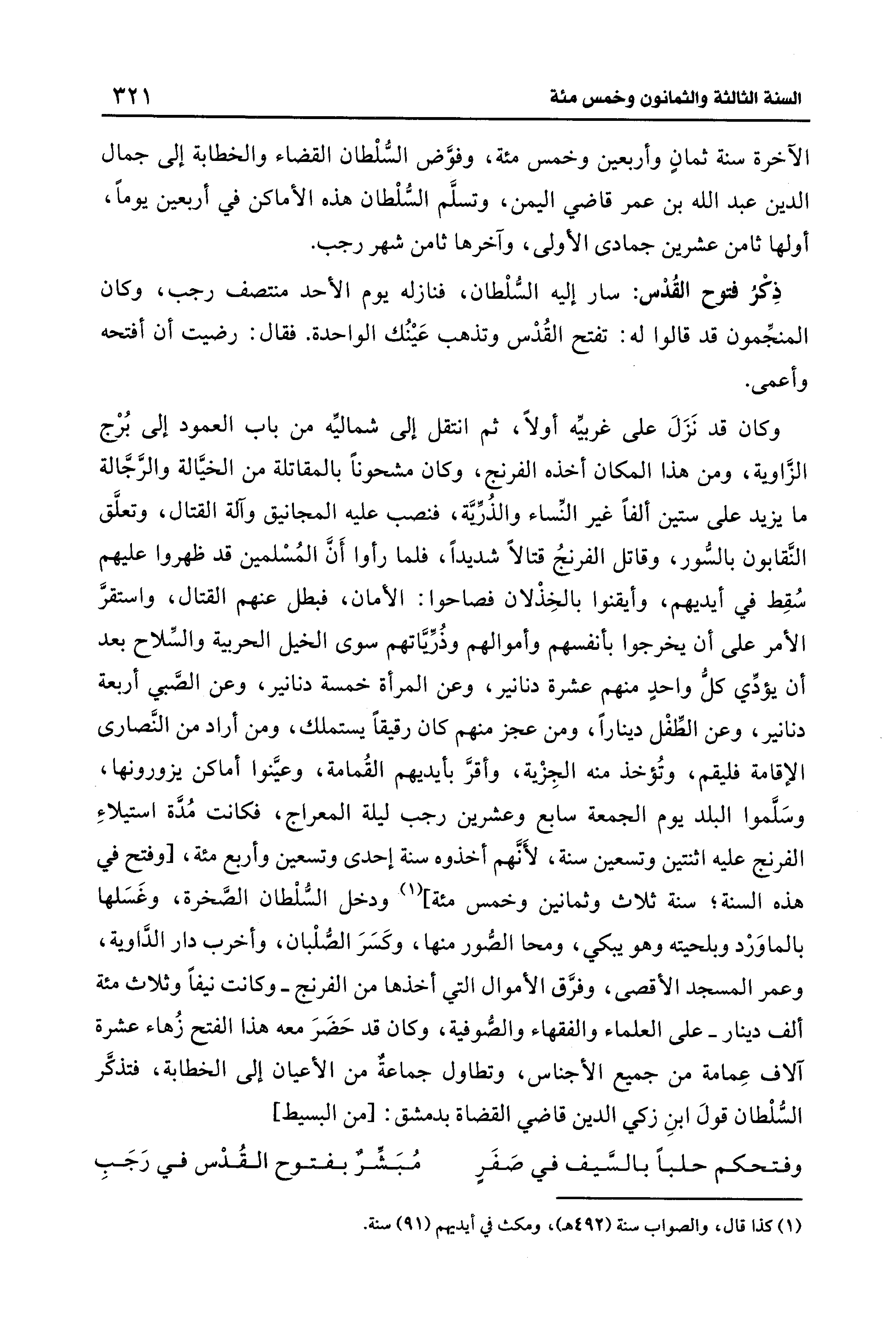(¬1) كذا قال، والصواب سنة (492 هـ)، ومكث في أيديهم (91) سنة.