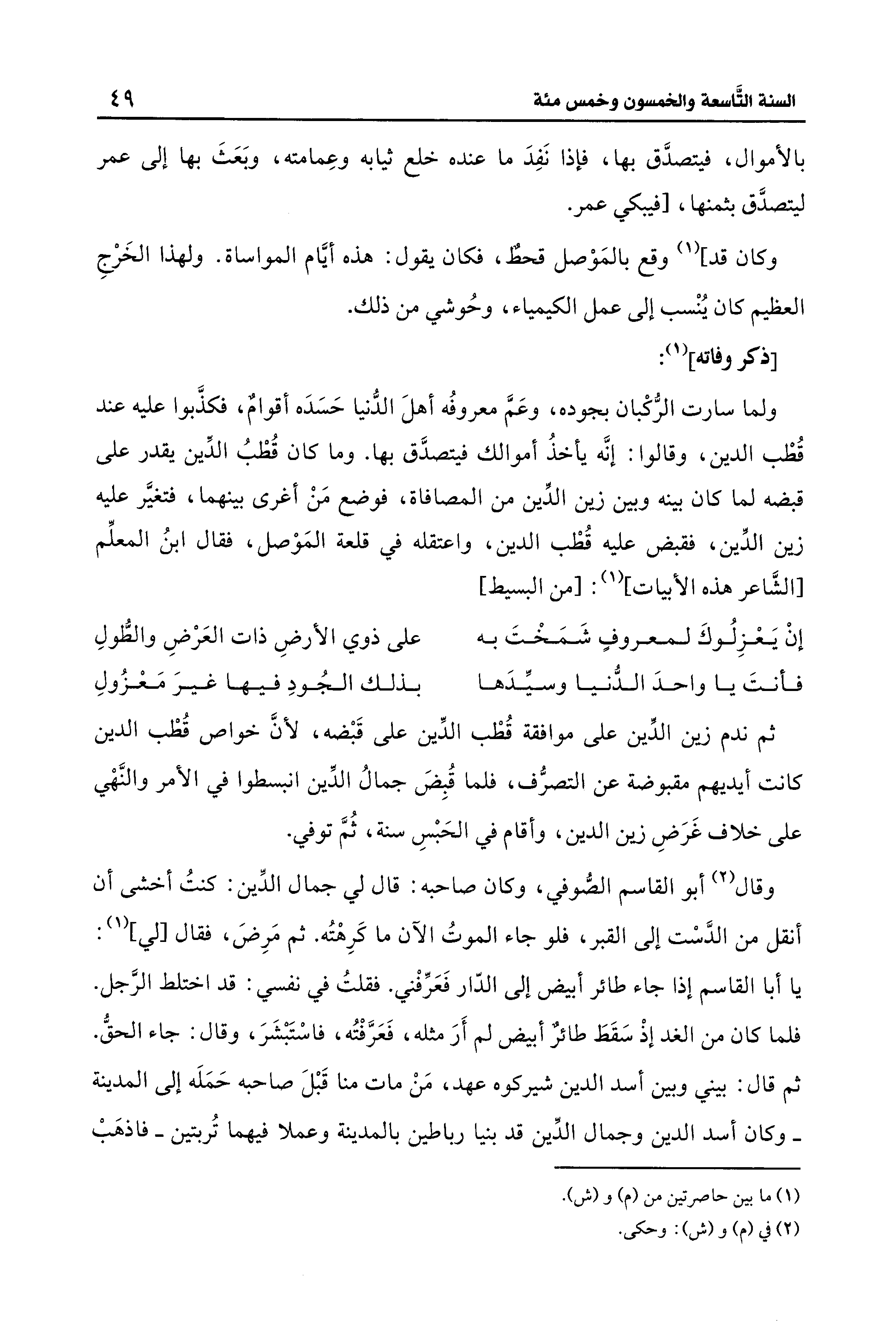 وكان قد] (¬1) وقع بالمَوْصل قحطٌ، فكان يقول: هذه أيَّام المواساة. ولهذا الخَرْجِ العظيم كان يُنْسب إلى عمل الكيمياء، وحُوشي من ذلك.