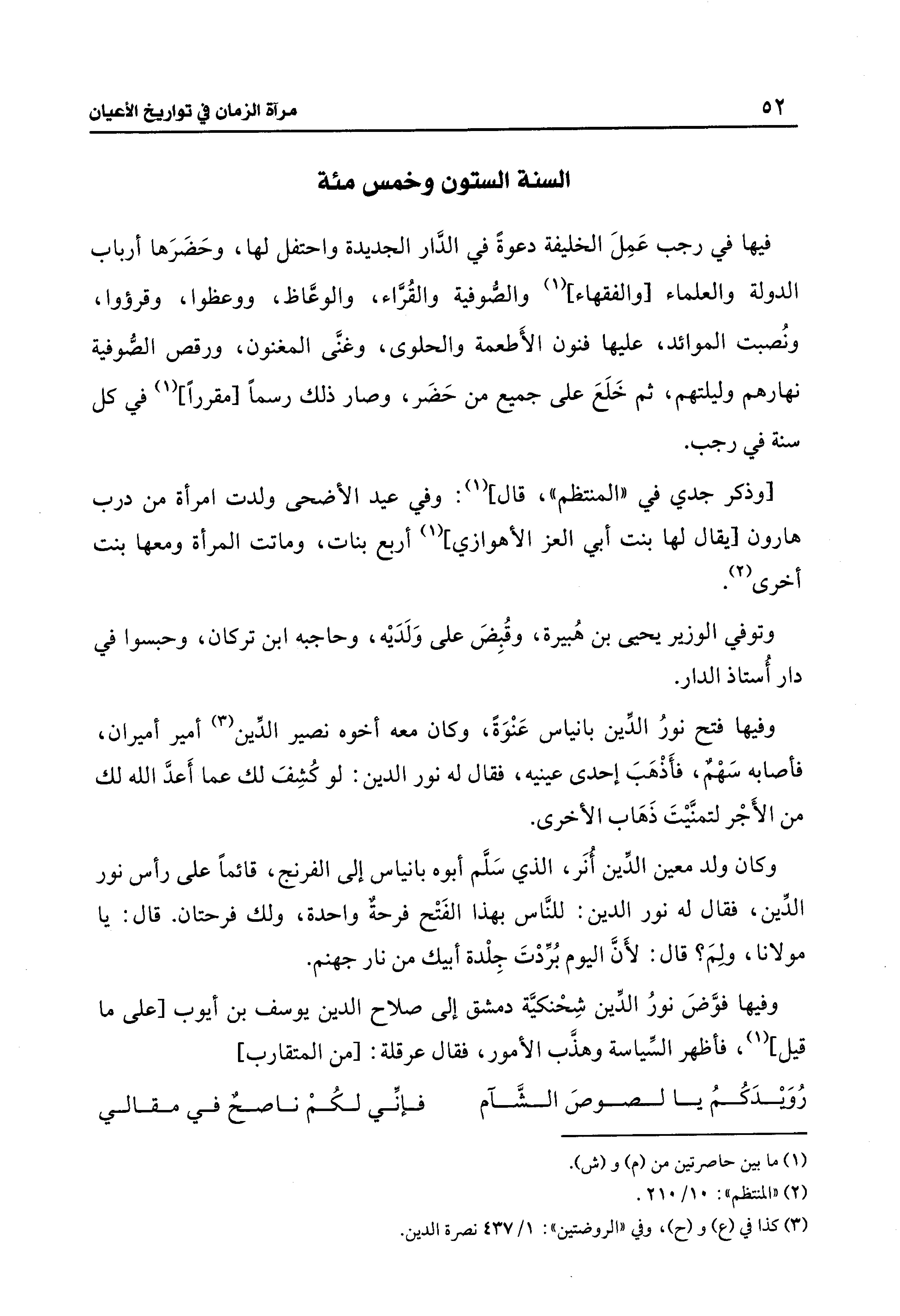 وفيها فوَّضَ نورُ الدِّين شِحْنكيَّة دمشق إلى صلاح الدين يوسف بن أيوب [على ما قيل] (1)، فأظهر السِّياسة وهذَّب الأمور، فقال عرقلة: [من المتقارب]